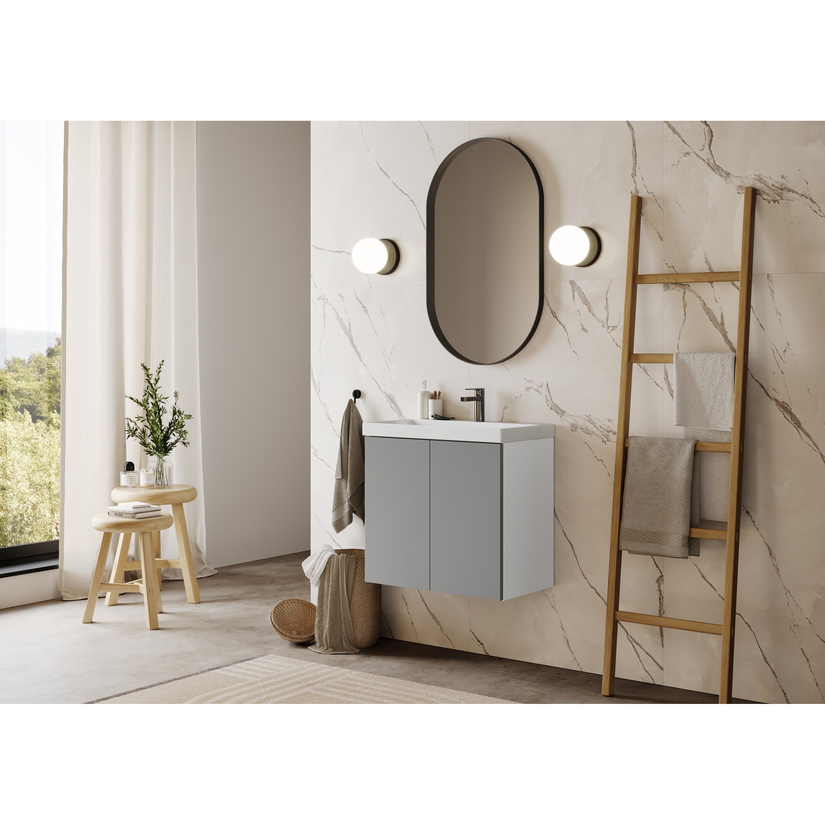 FLAT frameless, modern wall hung 24 inch bathroom vanity with sink for small and narrow bathrooms and powder rooms