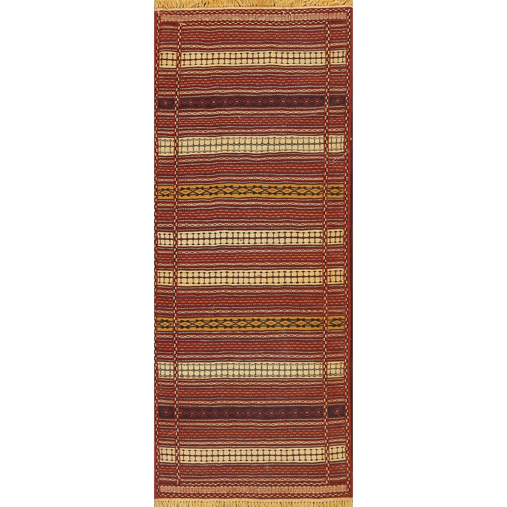 Striped Kilim Sirjan Persian Runner Rug Wool Flat-woven Hallway Carpet - 2'5" x 6'8"