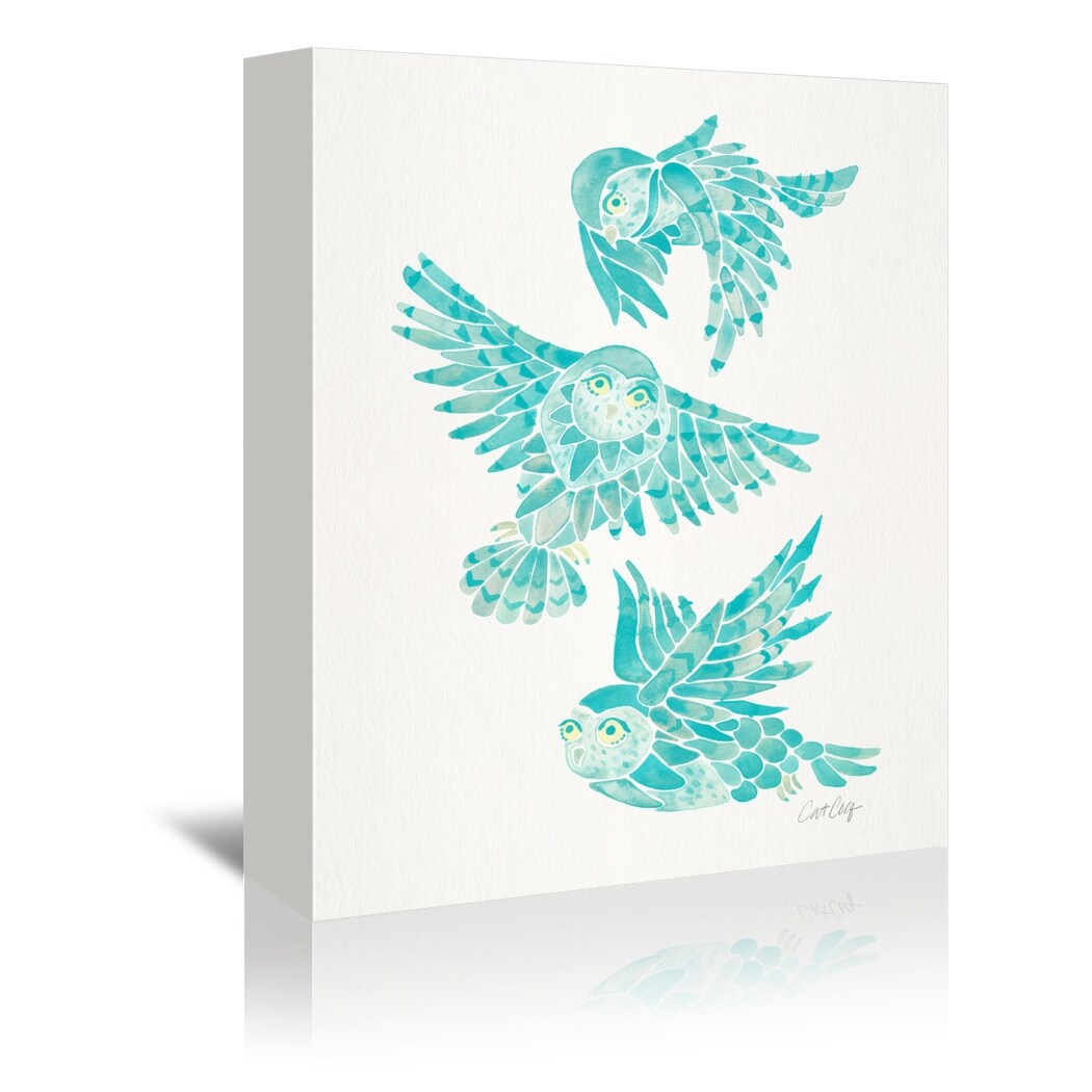 Americanflat - 8" x 10" Owls in Flight Turquoise by Cat Coquillette Wrapped Canvas Wall Art