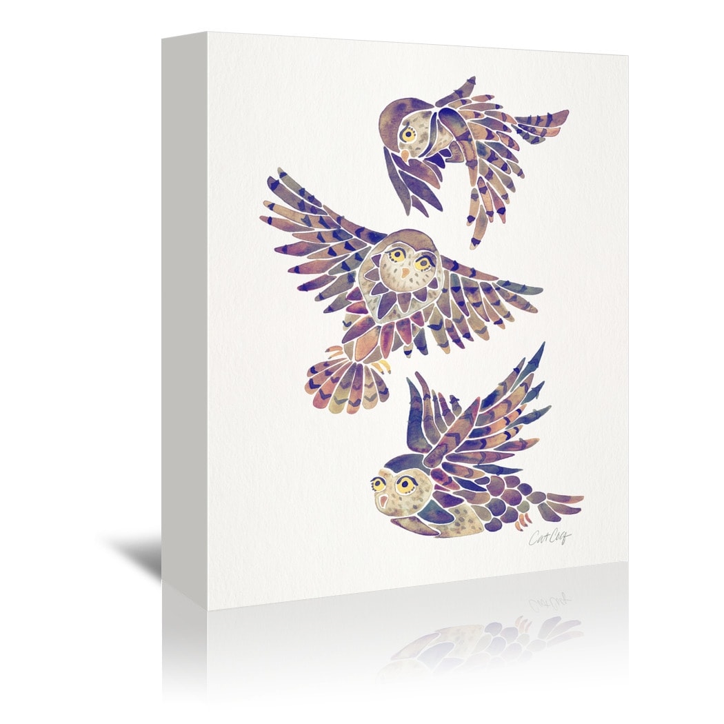 Americanflat - 8" x 10" Owls in Flight Mauve by Cat Coquillette Wrapped Canvas Wall Art