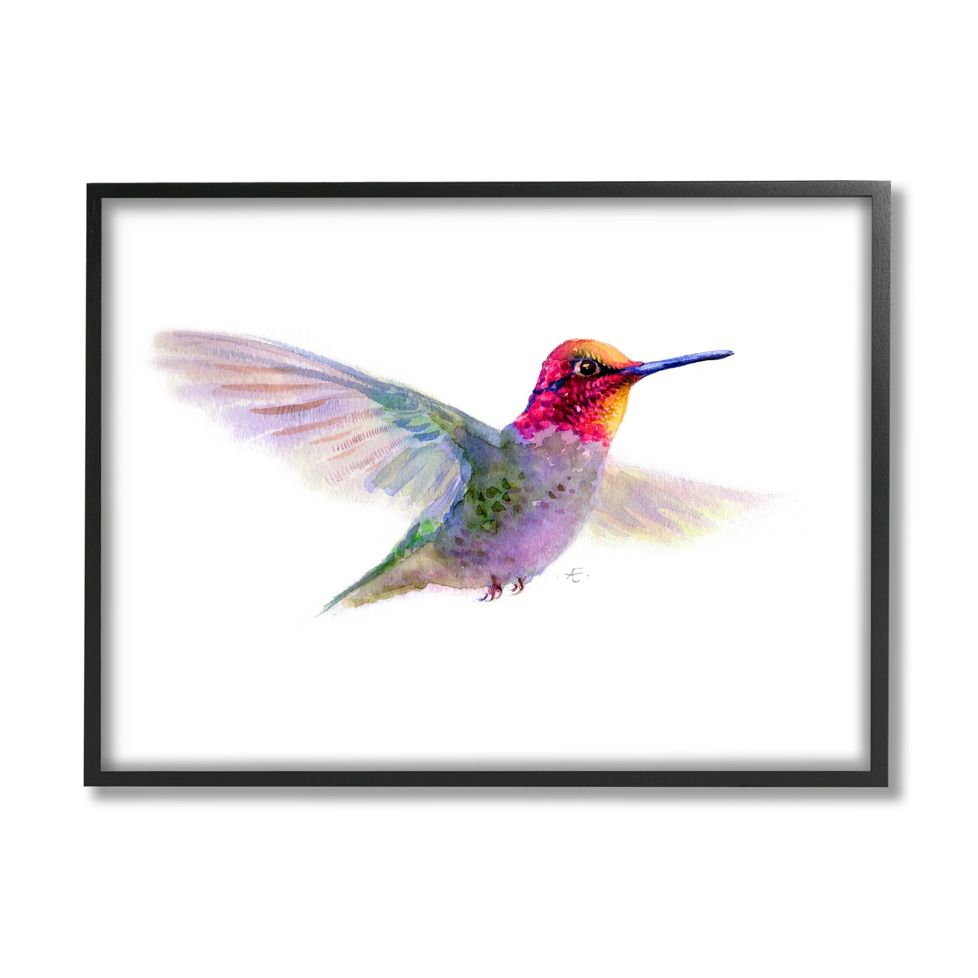 Stupell Hummingbird in Flight Pink Purple Bird Watercolor Painting Framed Wall Art - Multi-Color