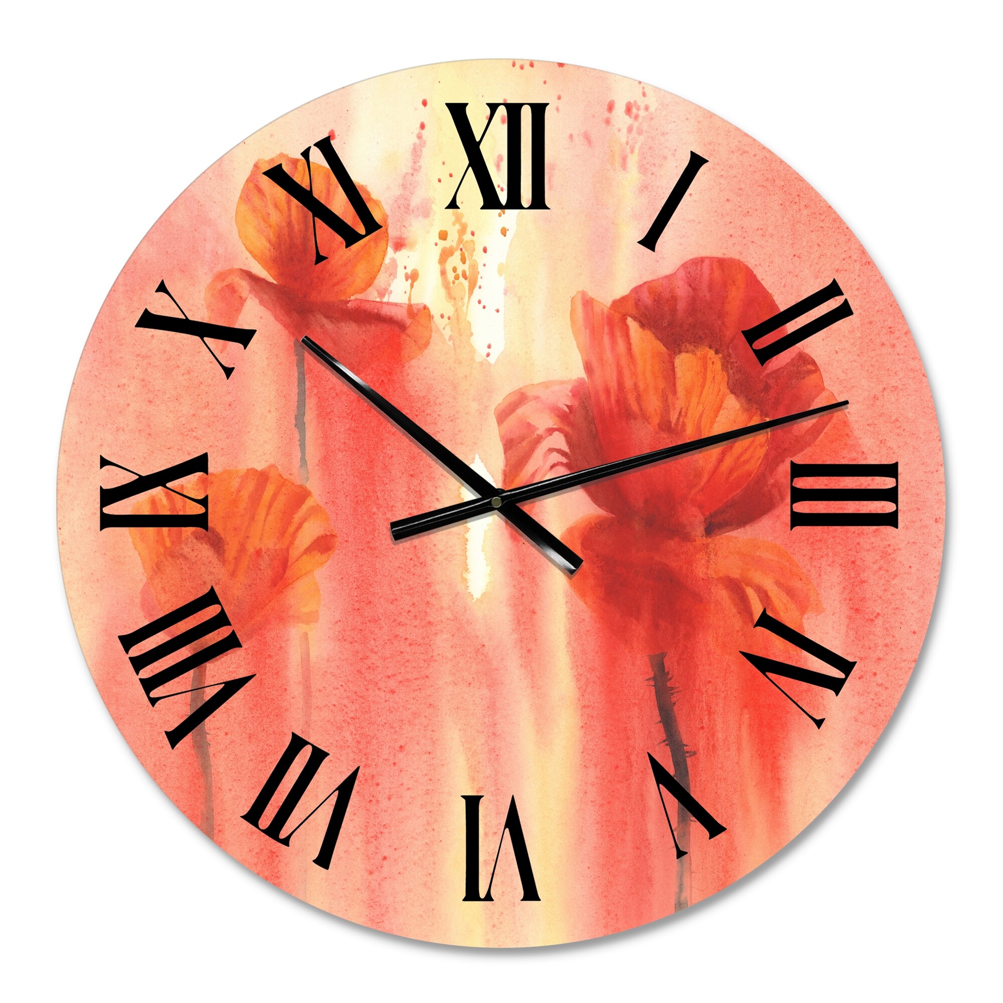 Designart 'Poppy Flower Fields Forever II' Farmhouse wall clock