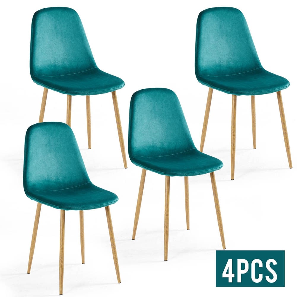 4 Pieces Velvet Upholstered Dining Chairs with Four Wooden Legs