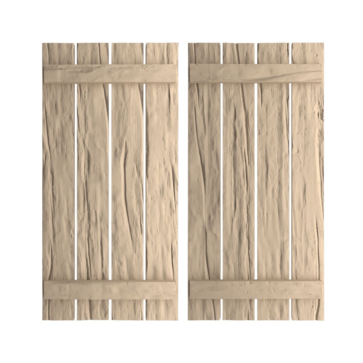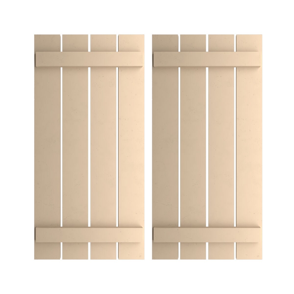Rustic Four Board Joined Board-n-Batten Faux Wood Shutters (Per Pair), Primed Tan