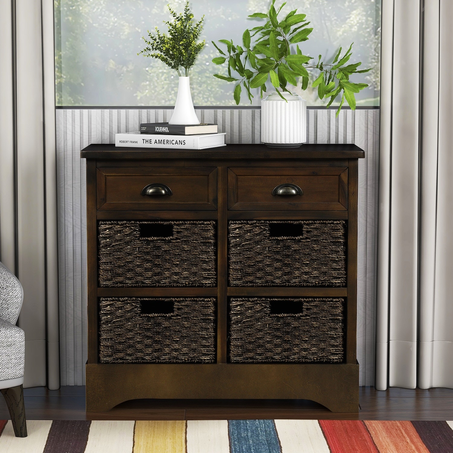 Rustic Storage Cabinet with Two Drawers and Four Classic Rattan Basket