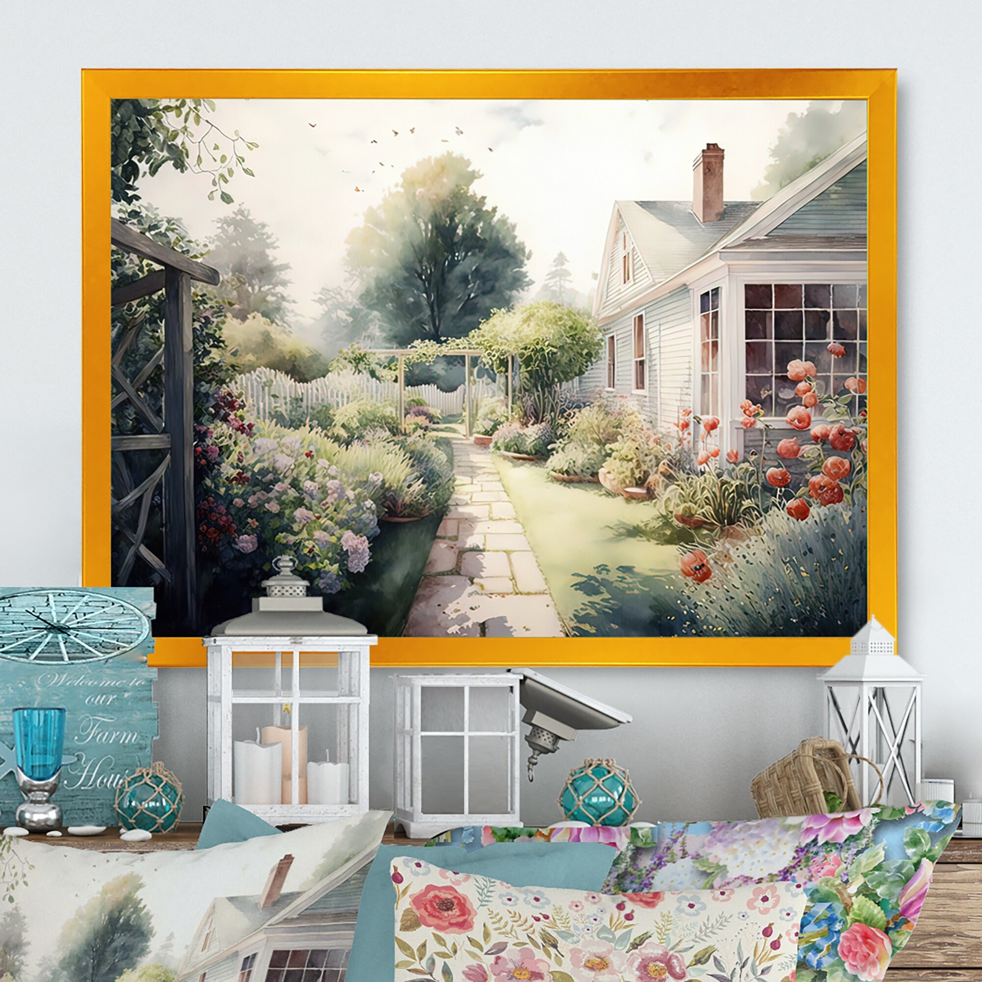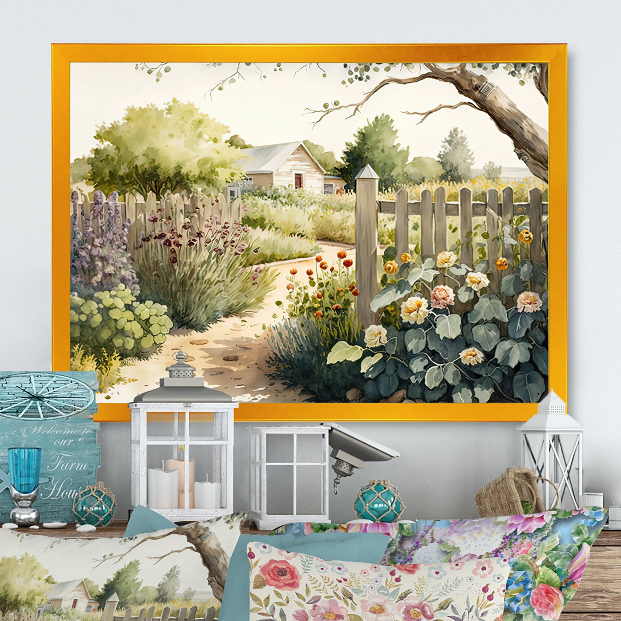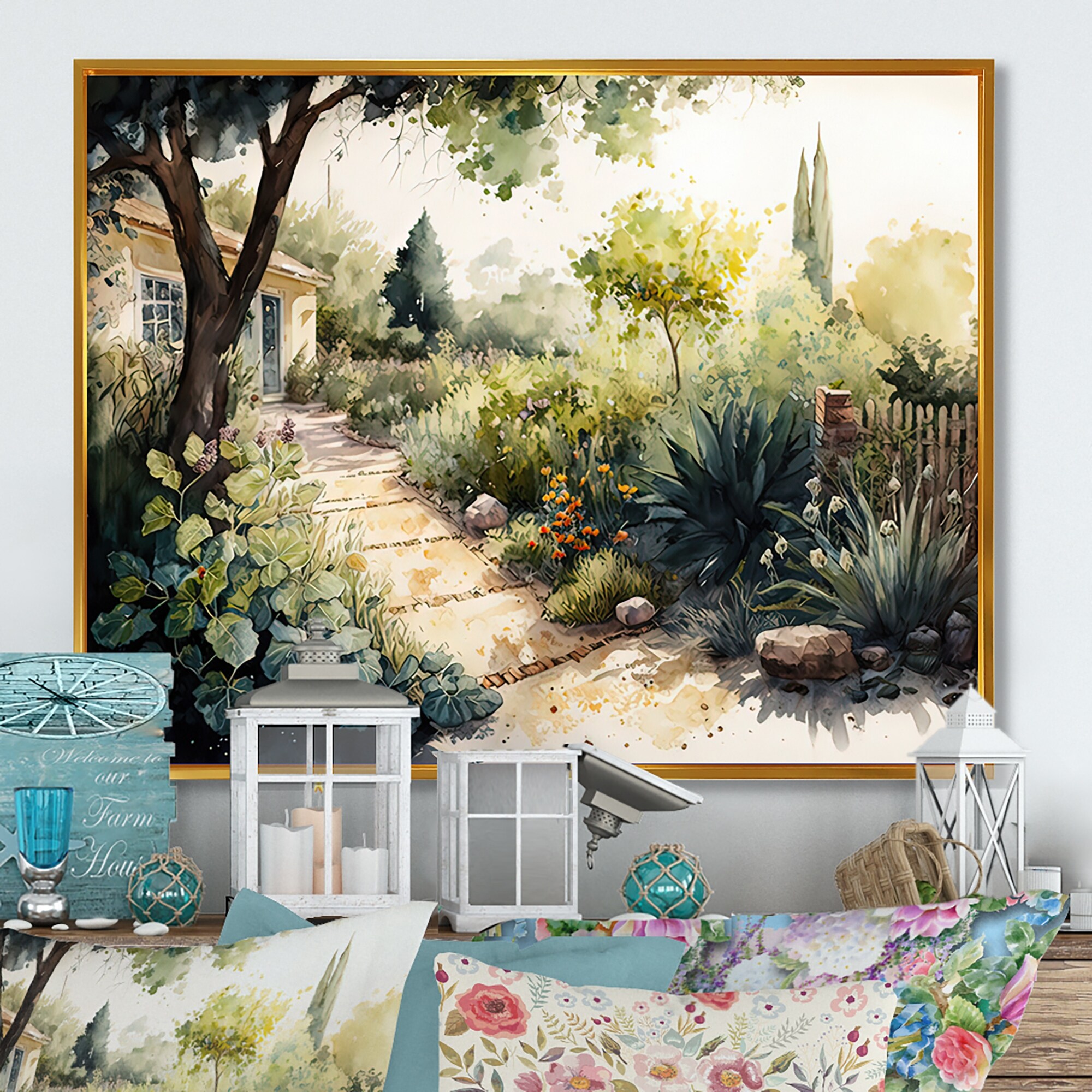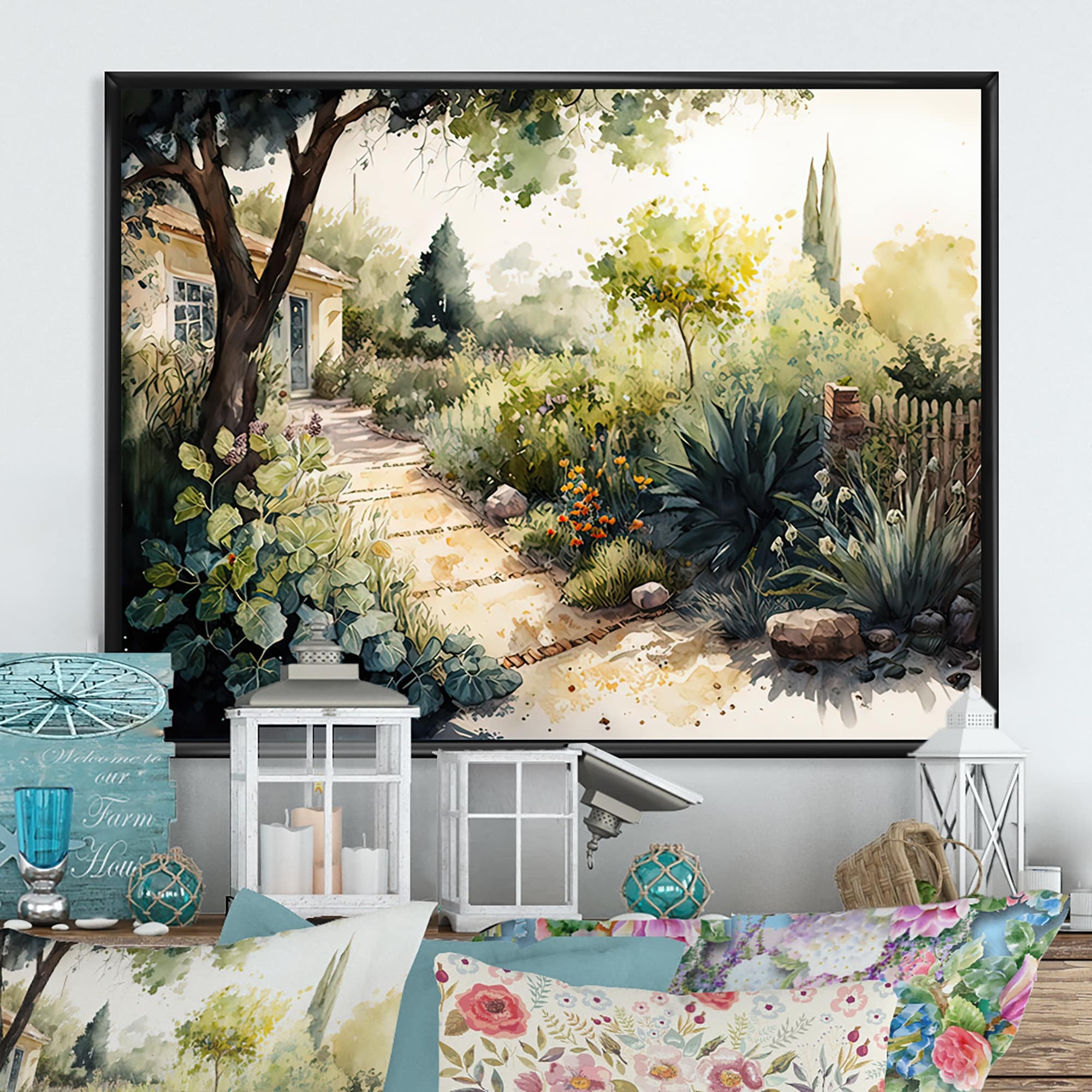 Designart "Fresh Garden At the Country II" Landscape Framed Canvas Art Print