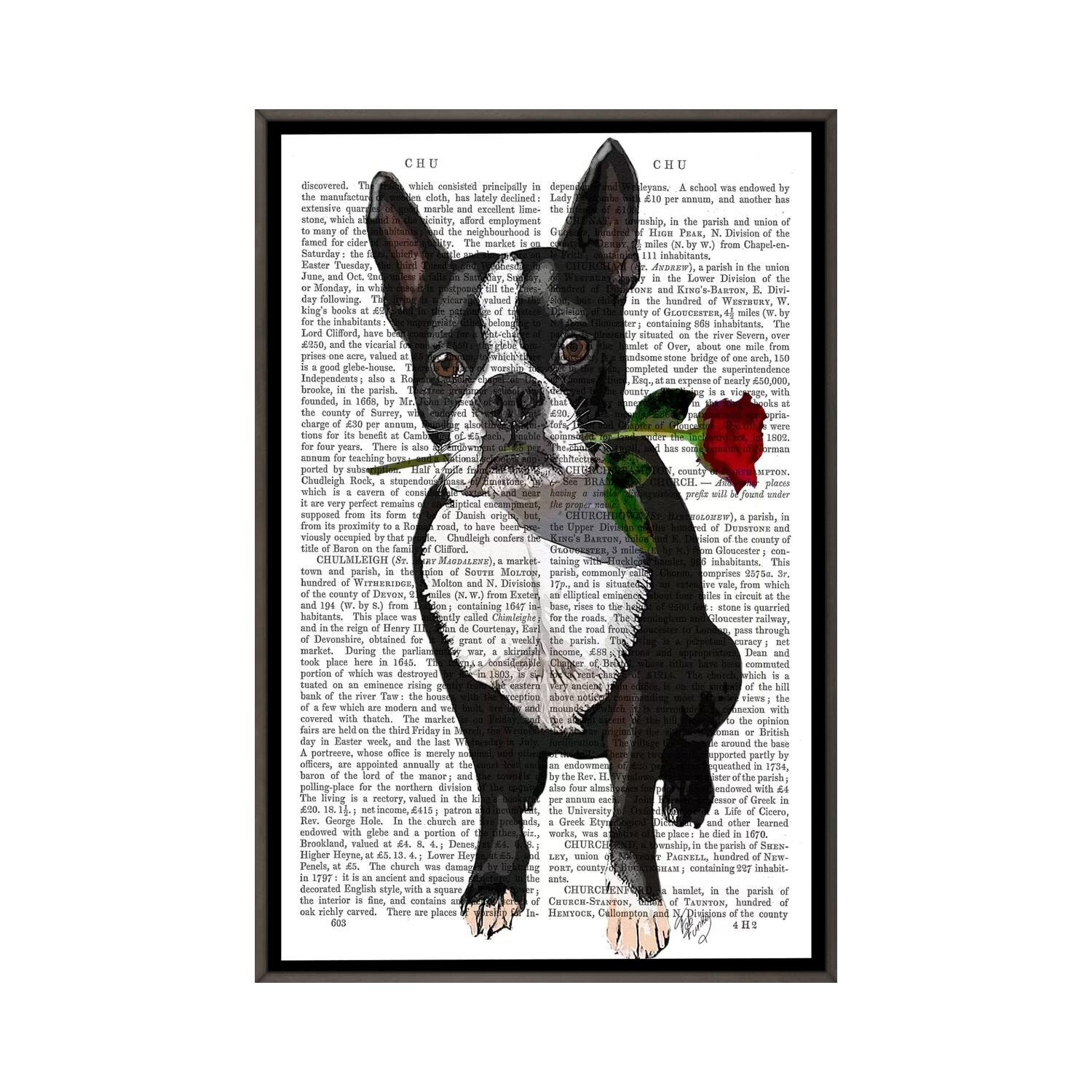iCanvas "Boston Terrier With Rose in Mouth" by Fab Funky Framed