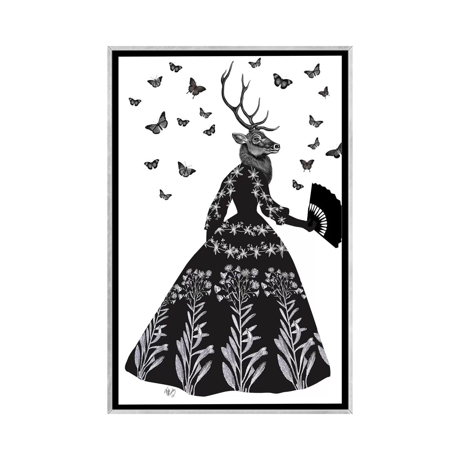 iCanvas "Glamour Deer in Black" by Fab Funky Framed Canvas Print