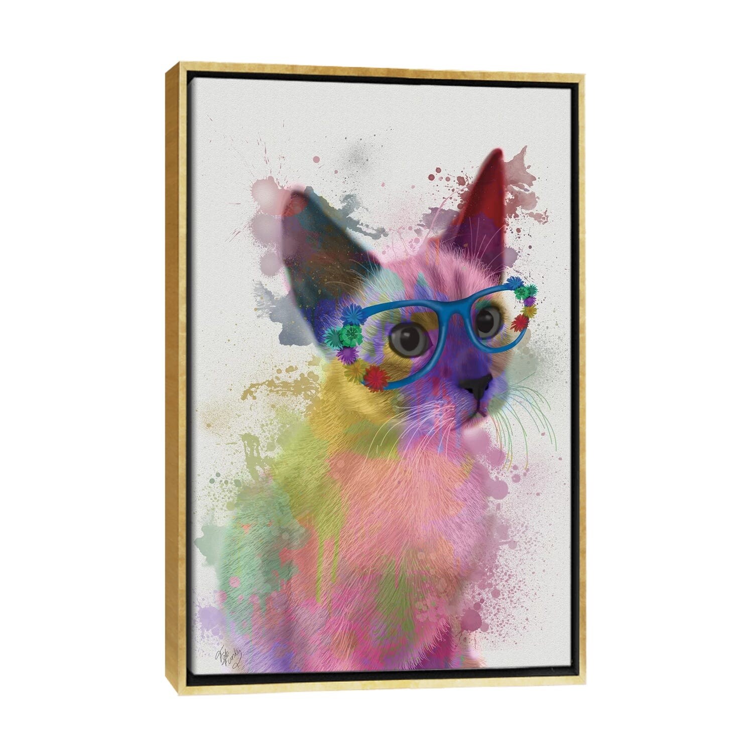iCanvas "Rainbow Splash Cat II" by Fab Funky Framed Canvas Print