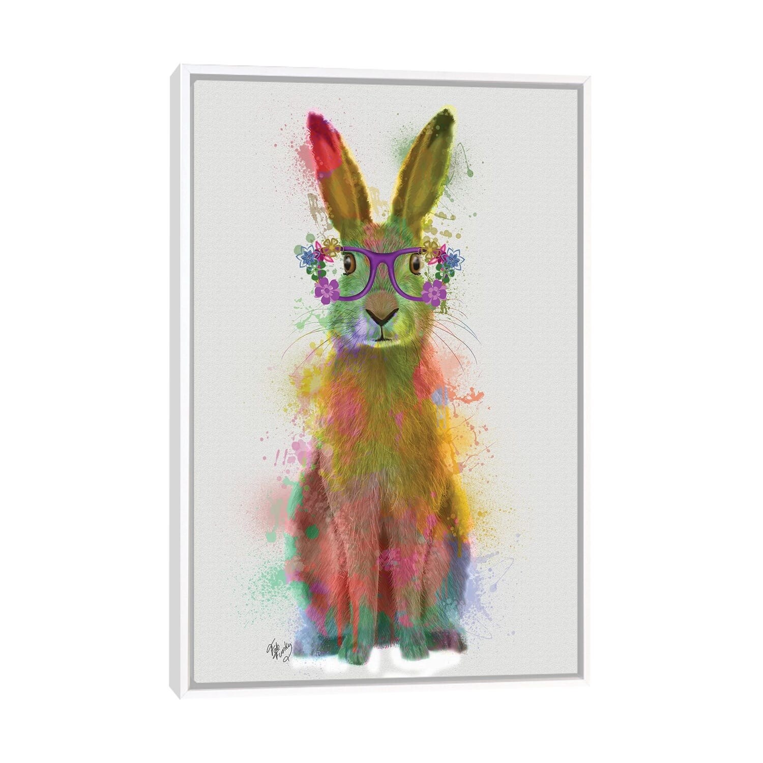 iCanvas "Rainbow Splash Ra3bit I" by Fab Funky Framed Canvas Print