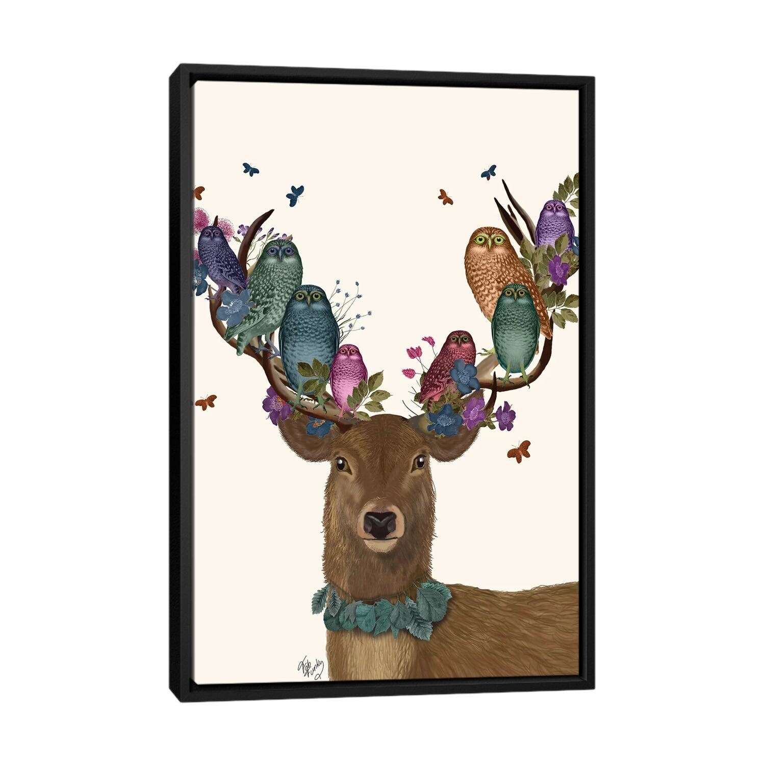 iCanvas "Deer Birdkeeper, Owls" by Fab Funky Framed Canvas Print