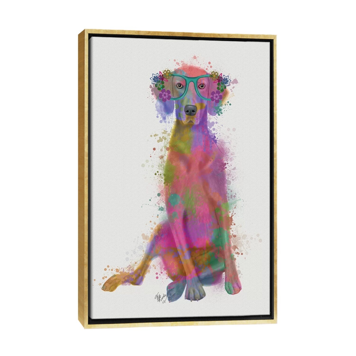 iCanvas "Rainbow Splash Weimaraner, Full" by Fab Funky Framed