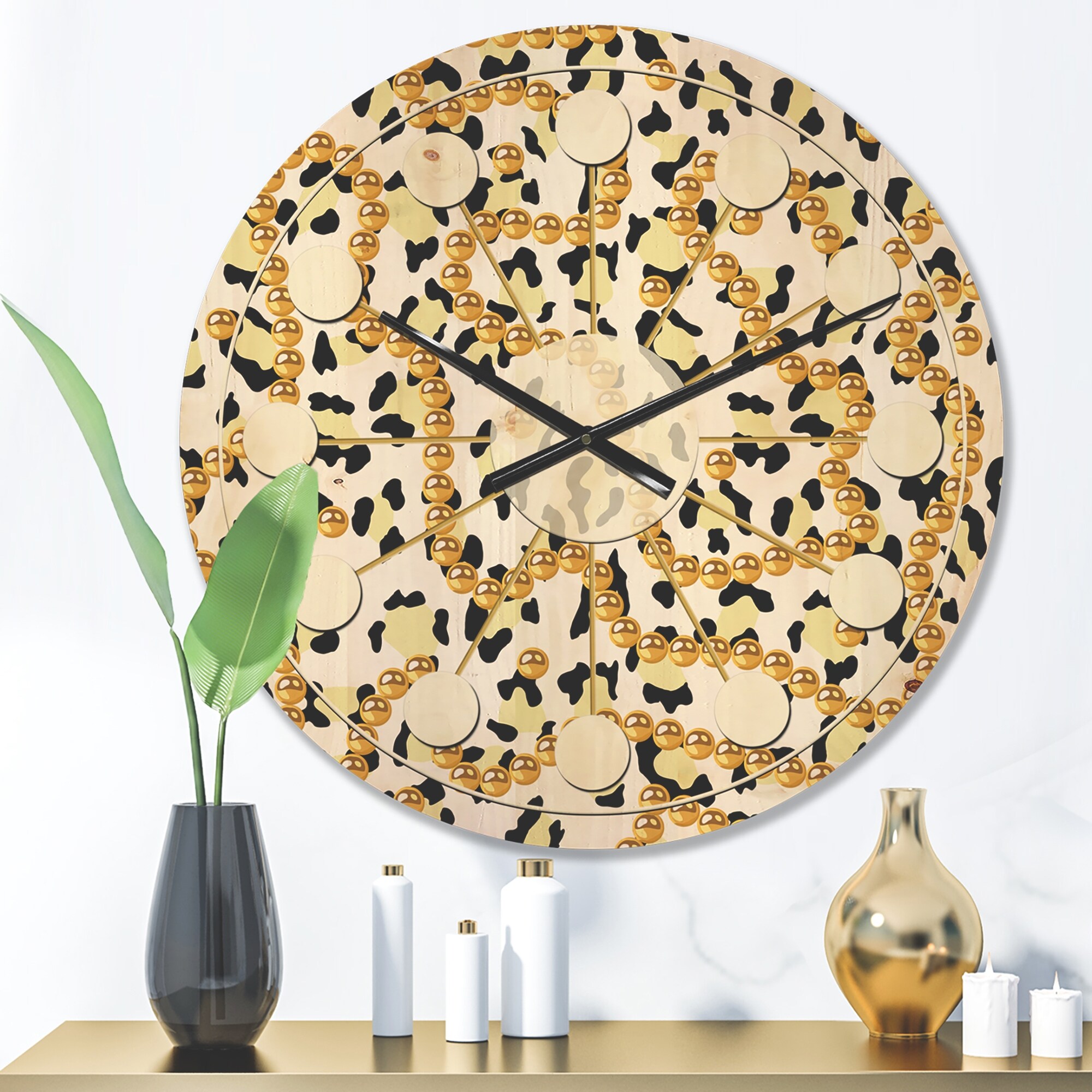 Designart 'Leopard Fur Safari VI' Mid-Century Modern Wood Wall Clock