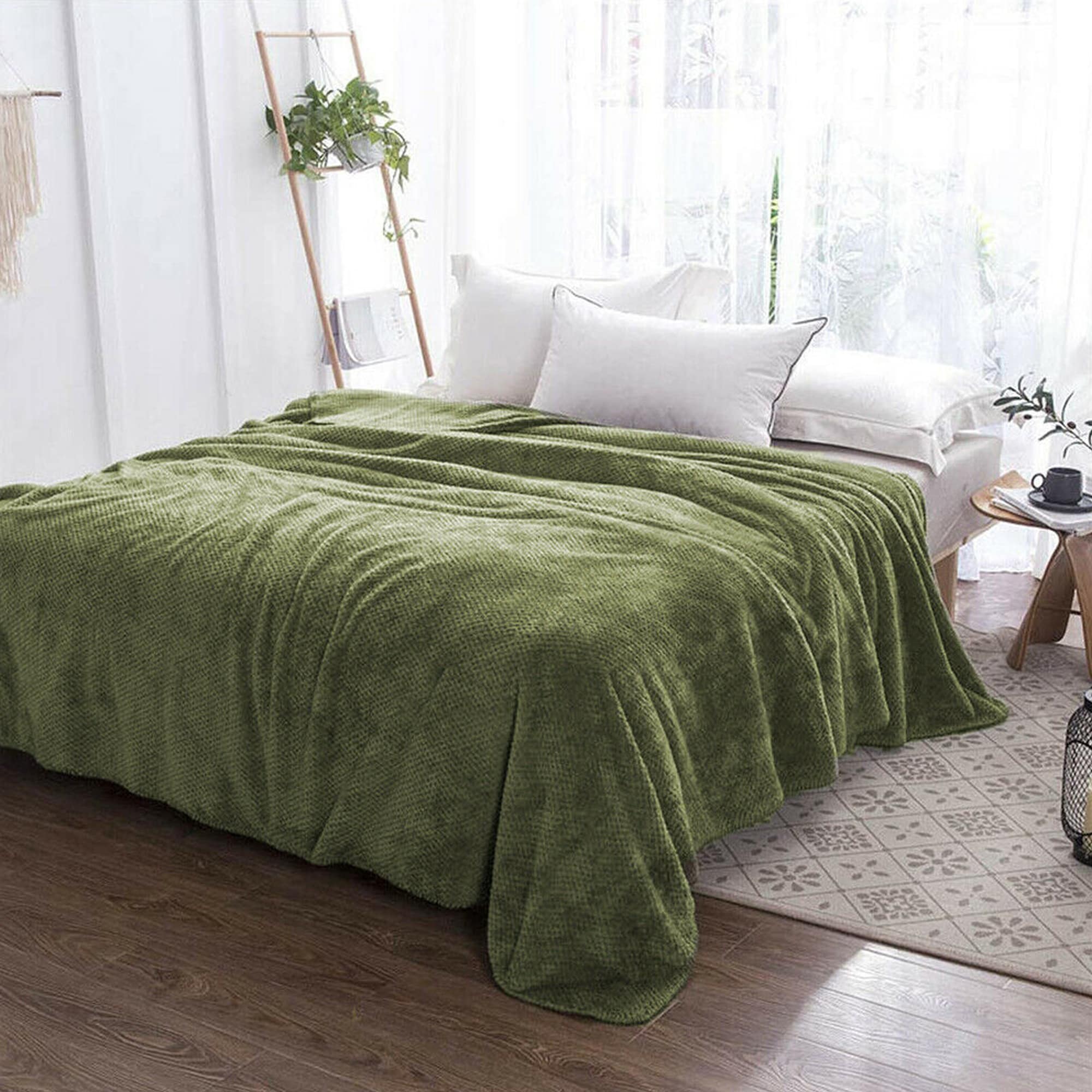 Soft Faux Fur Fleece Reversible Blanket Throw Green