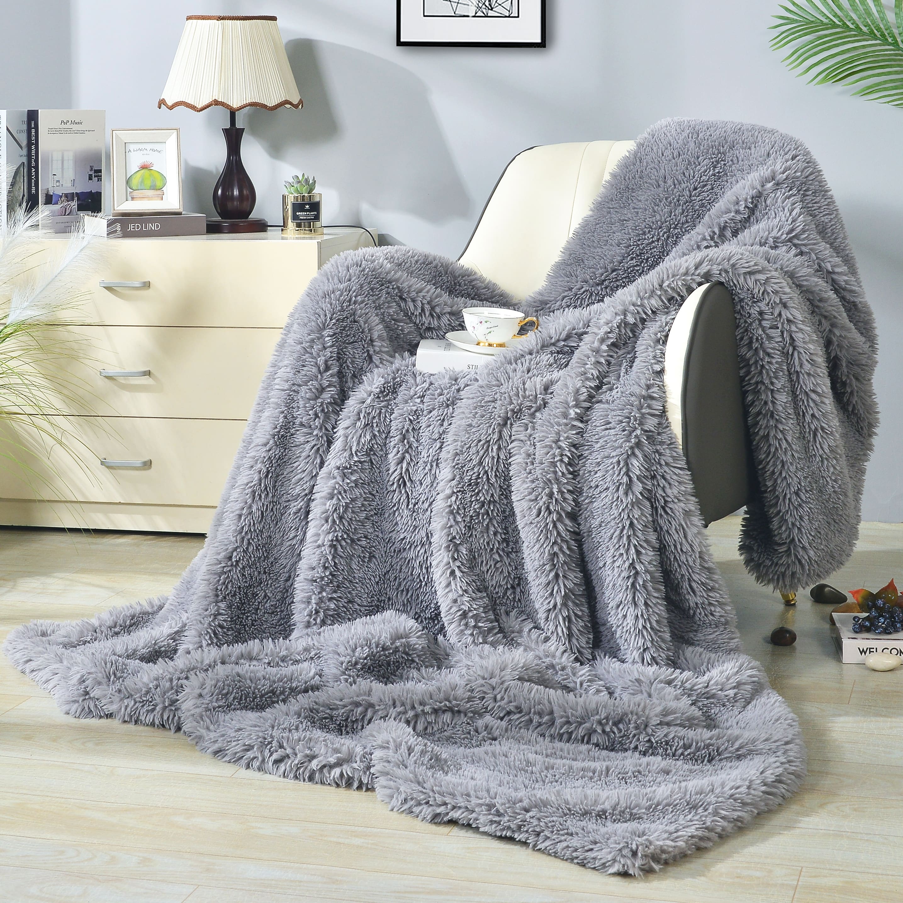 Shaggy Long FauxFur Throw Blanket