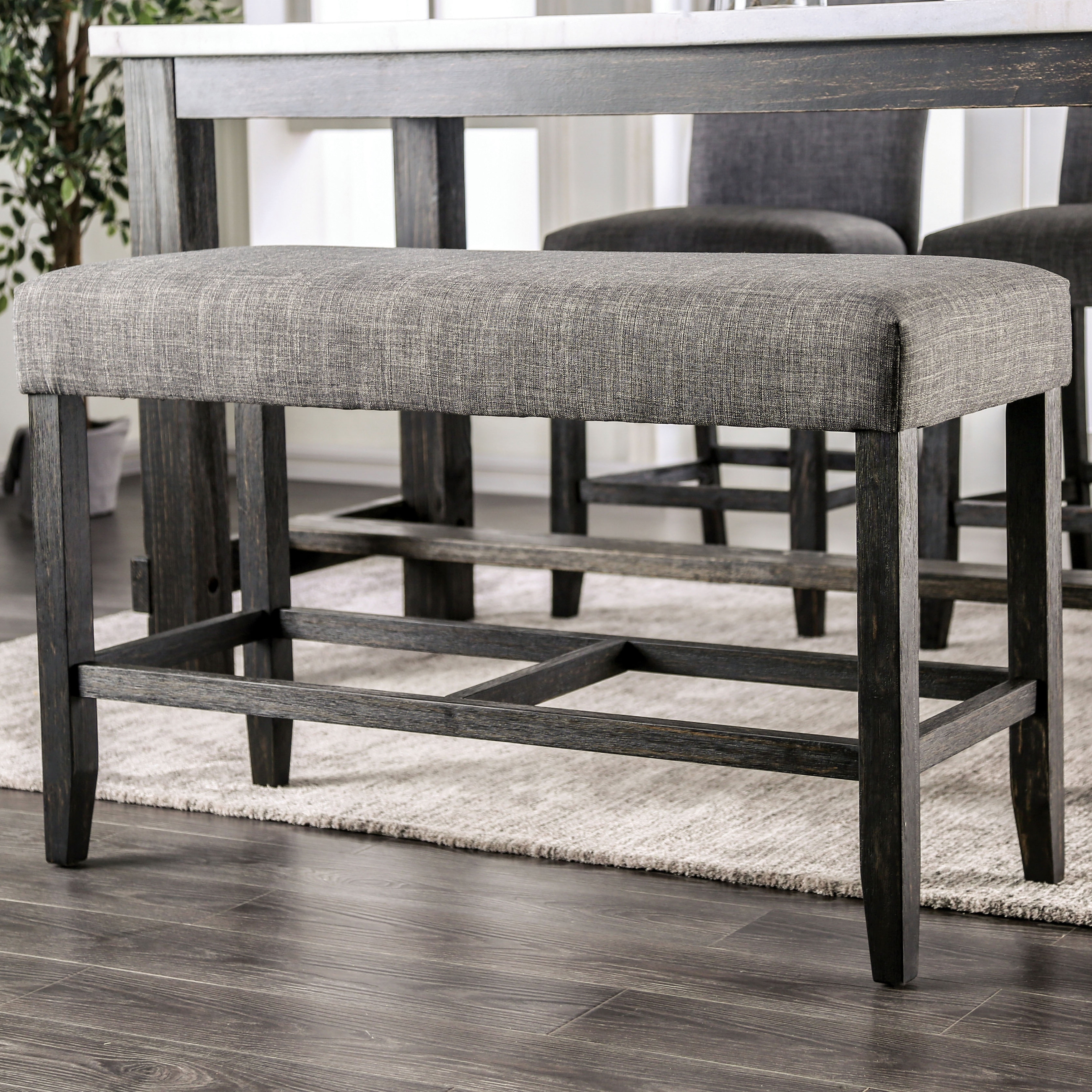 Furniture of America Shap Rustic Linen Fabric 41-inch Counter Height Bench