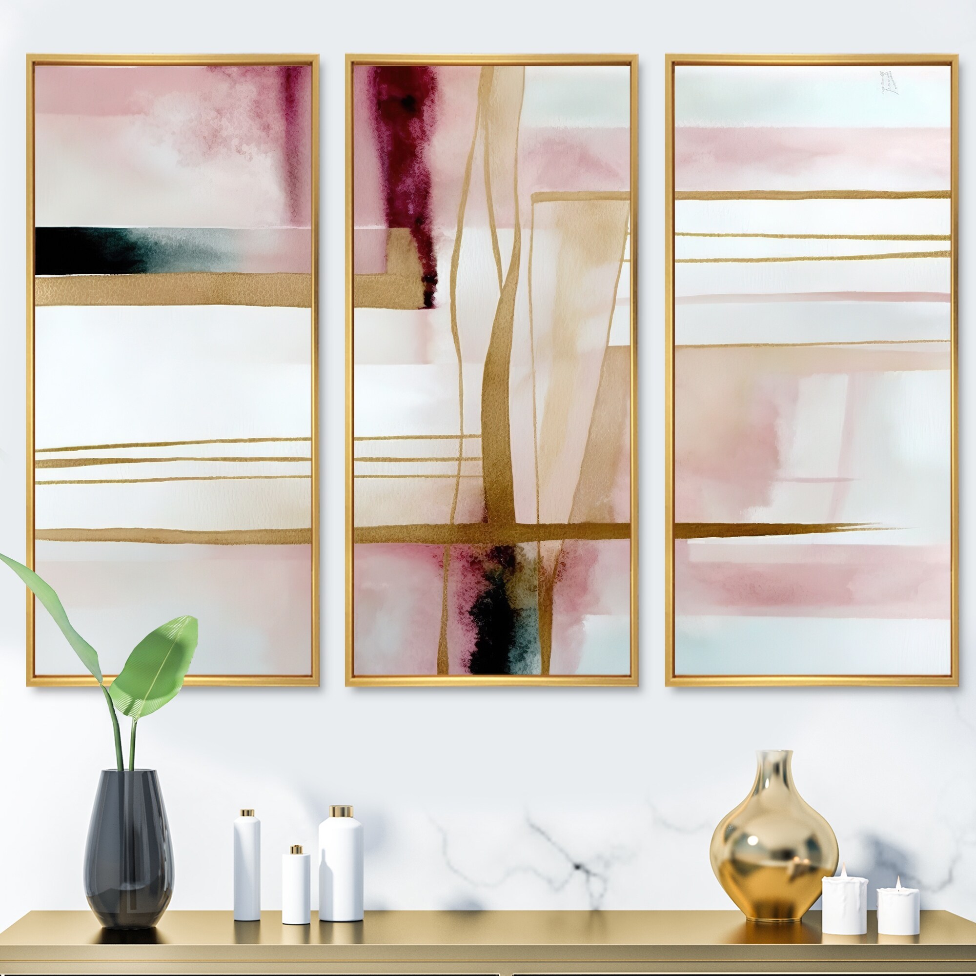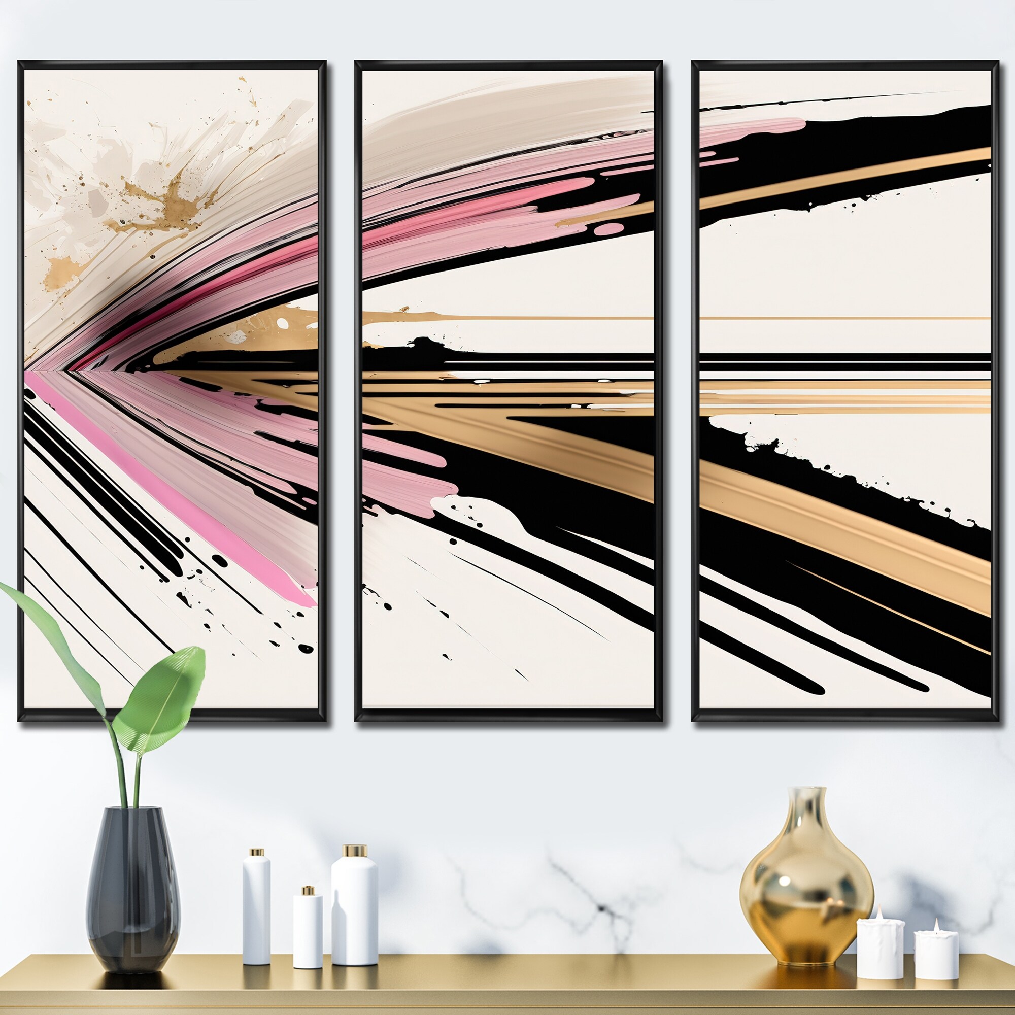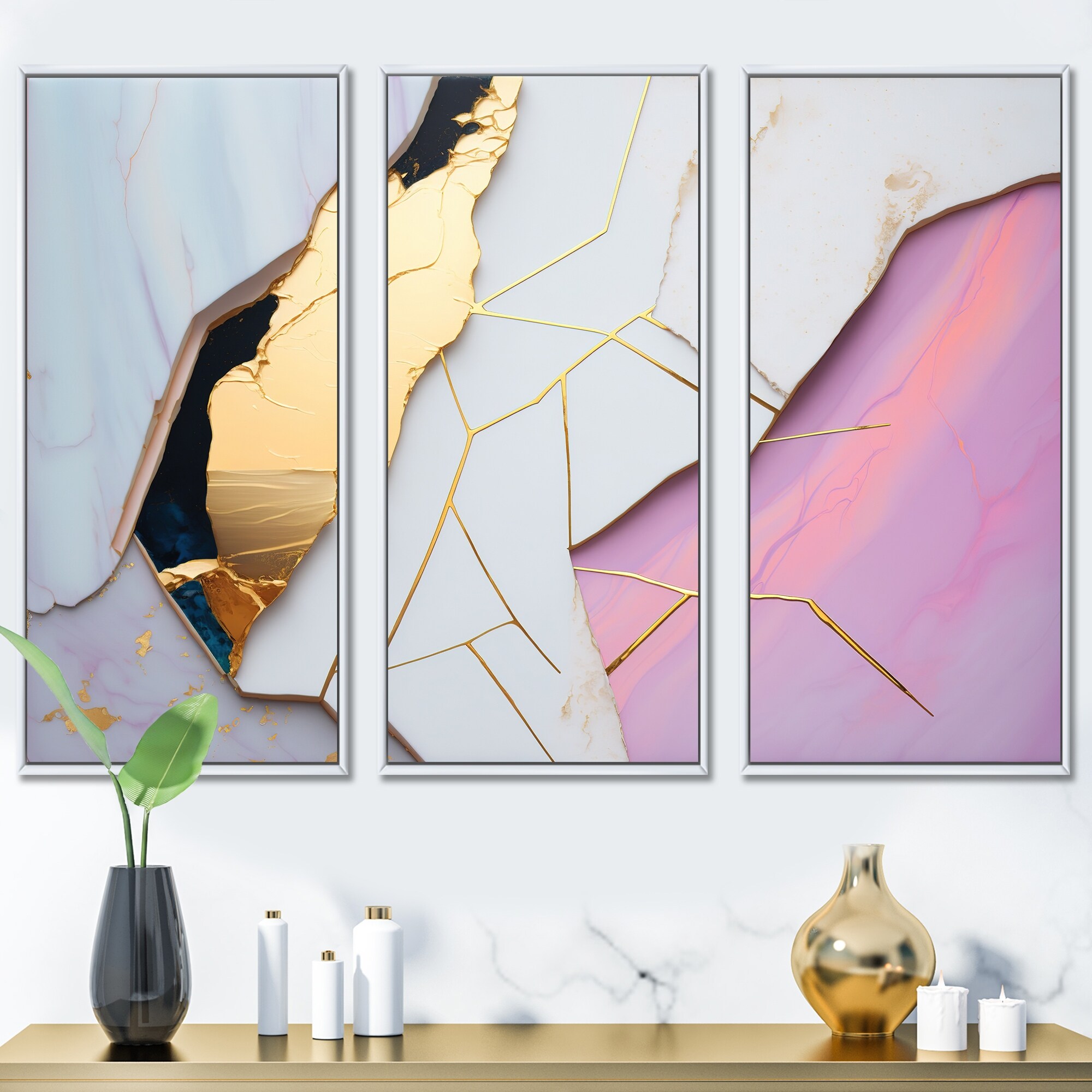 Designart "Abstract Geode Marble Waves Pink II" Abstract Marble Framed Canvas Art Print - 3 Panels