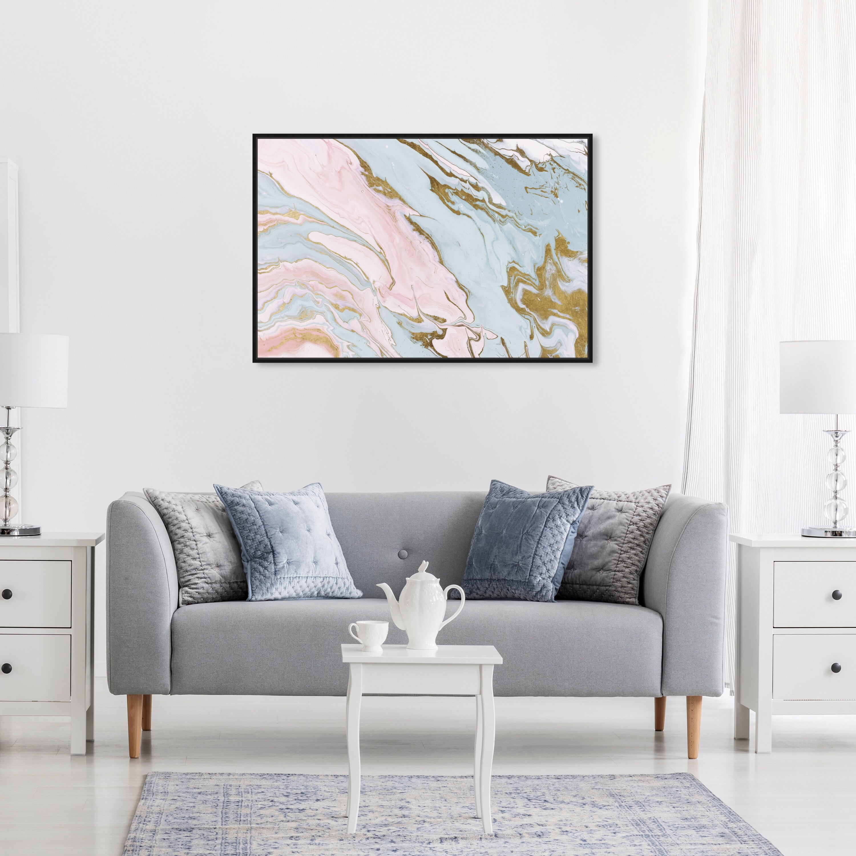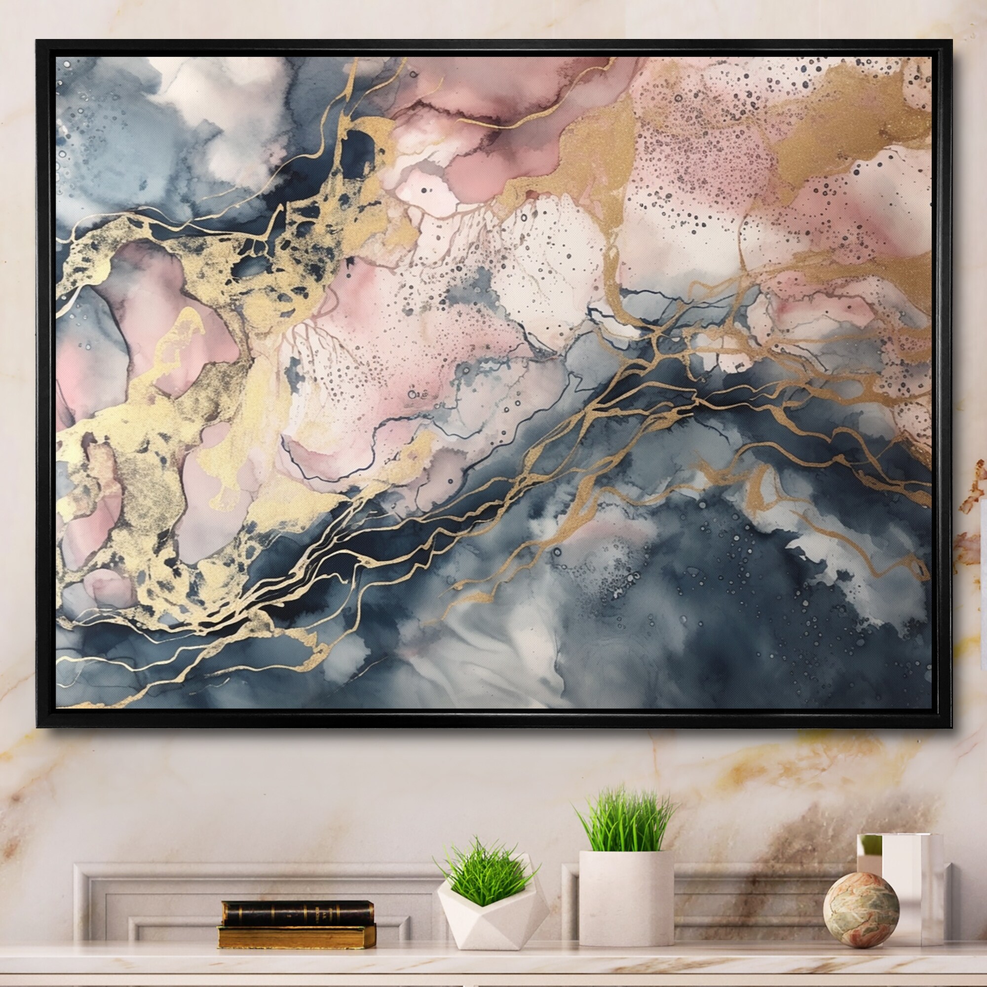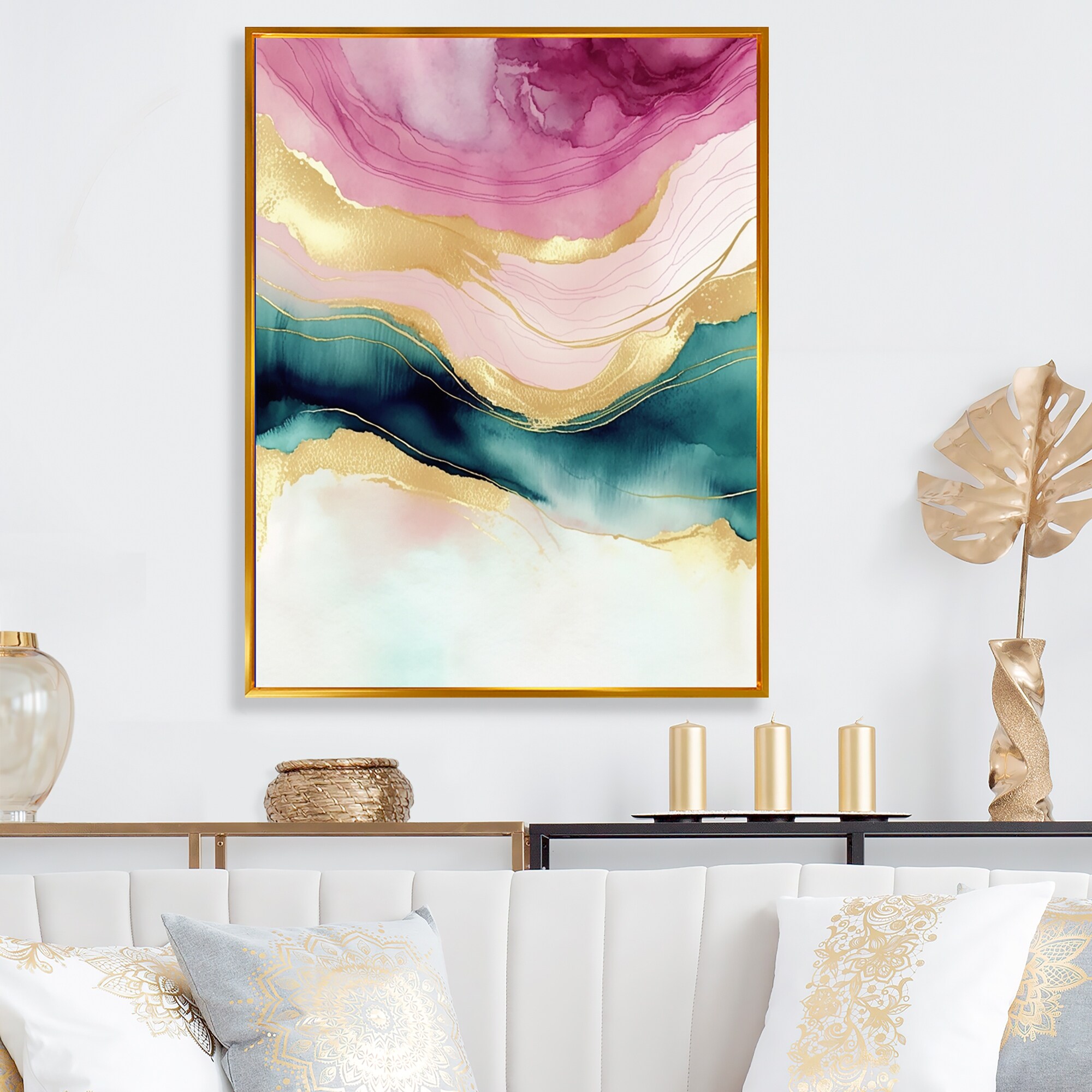 Designart "Abstract Geode Marble Waves Pink III" Marble Abstract Framed Canvas Art Print