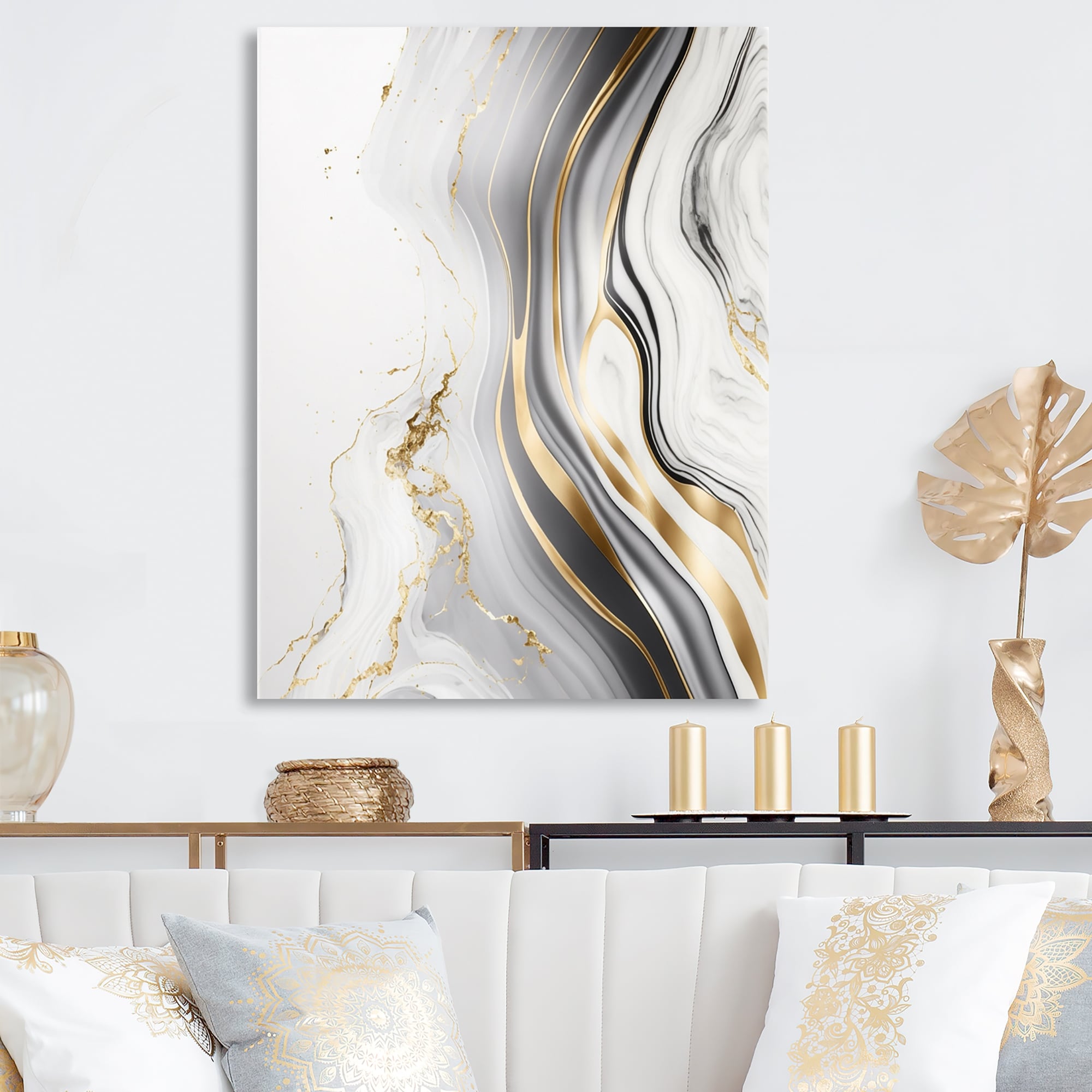 Designart "Abstract Geode Marble Waves White I" Modern Waves Framed Canvas Art Print - 3 Panels