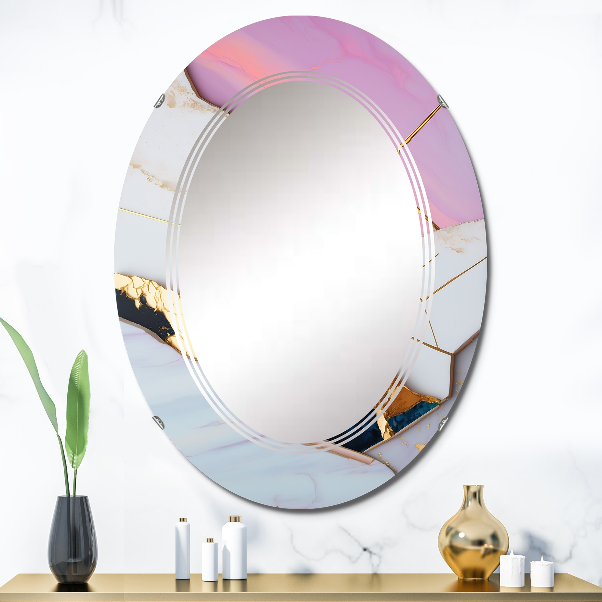 Designart 'Marbled Geode 2' Printed Modern Round or Oval Wall Mirror - Space