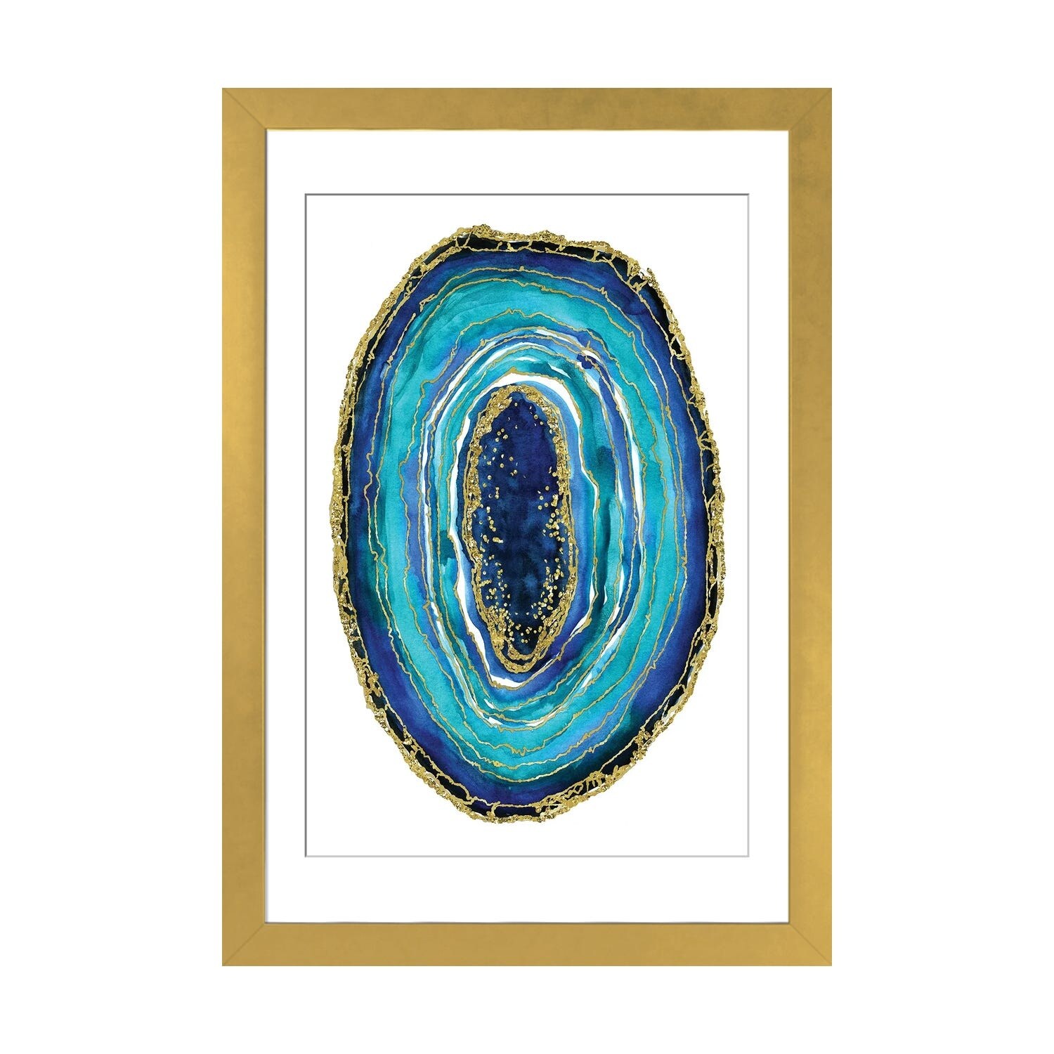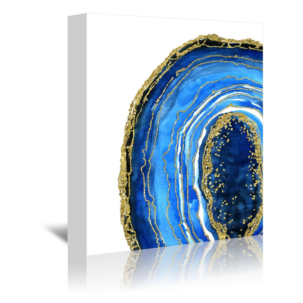 Americanflat - 8" x 10" Watercolor Geode in Blue And Gold by Blursbyai Wrapped Canvas Wall Art