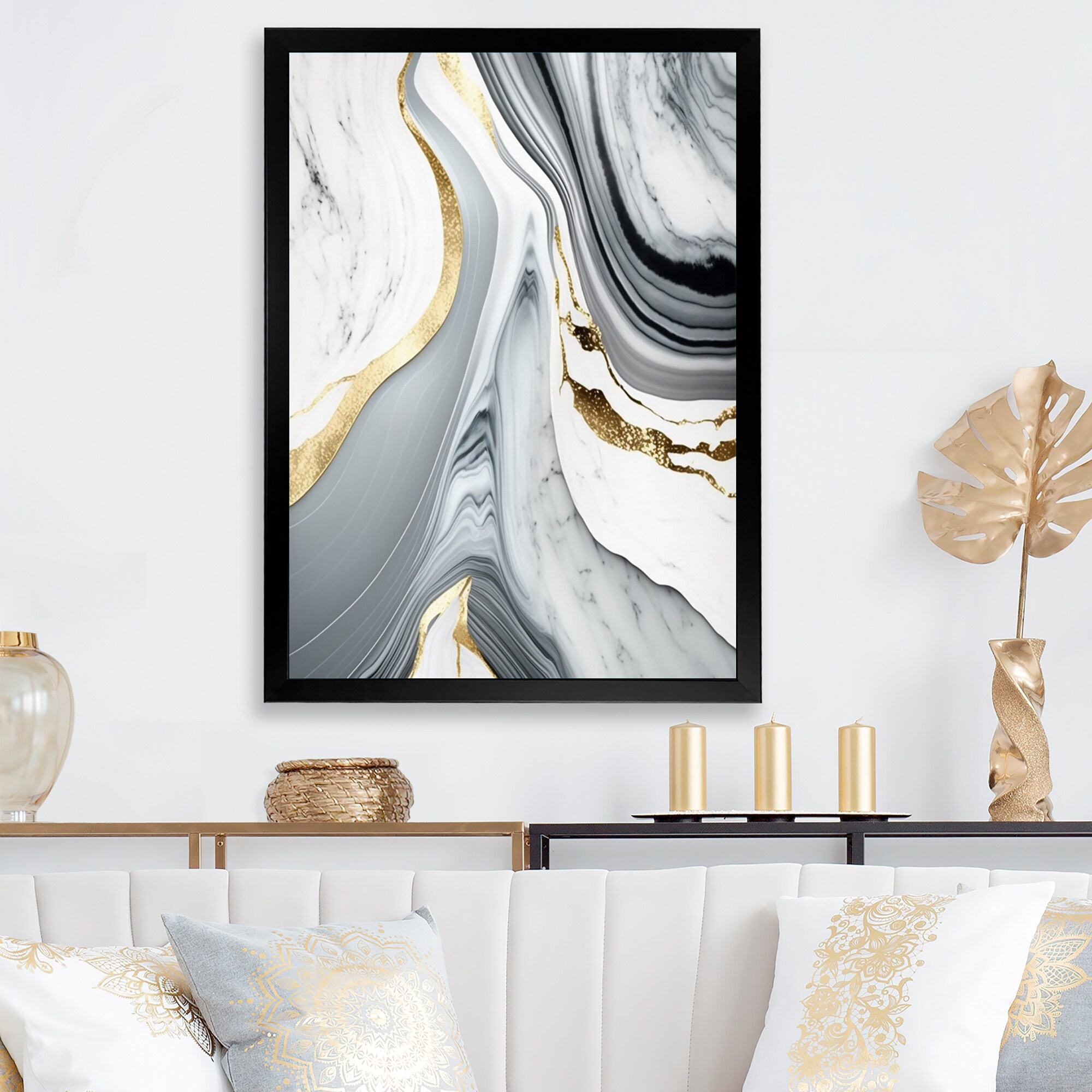 Designart "Abstract Geode Marble Waves Grey II" Abstract Framed Art Print