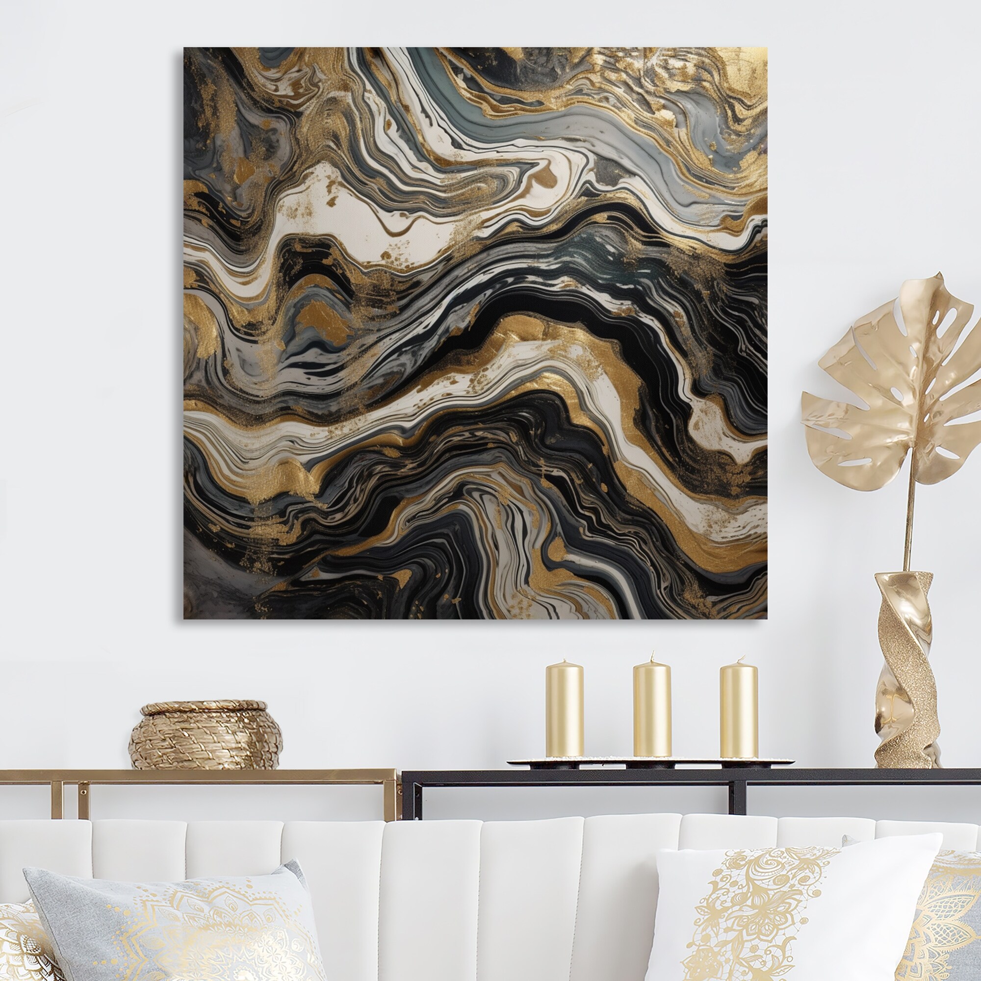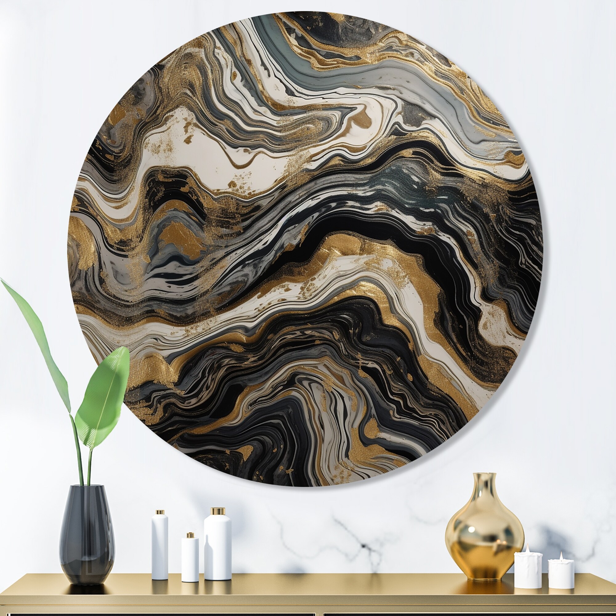 Designart 'Abstract Geode Marble Waves Grey III' Modern Waves Metal Wall Art