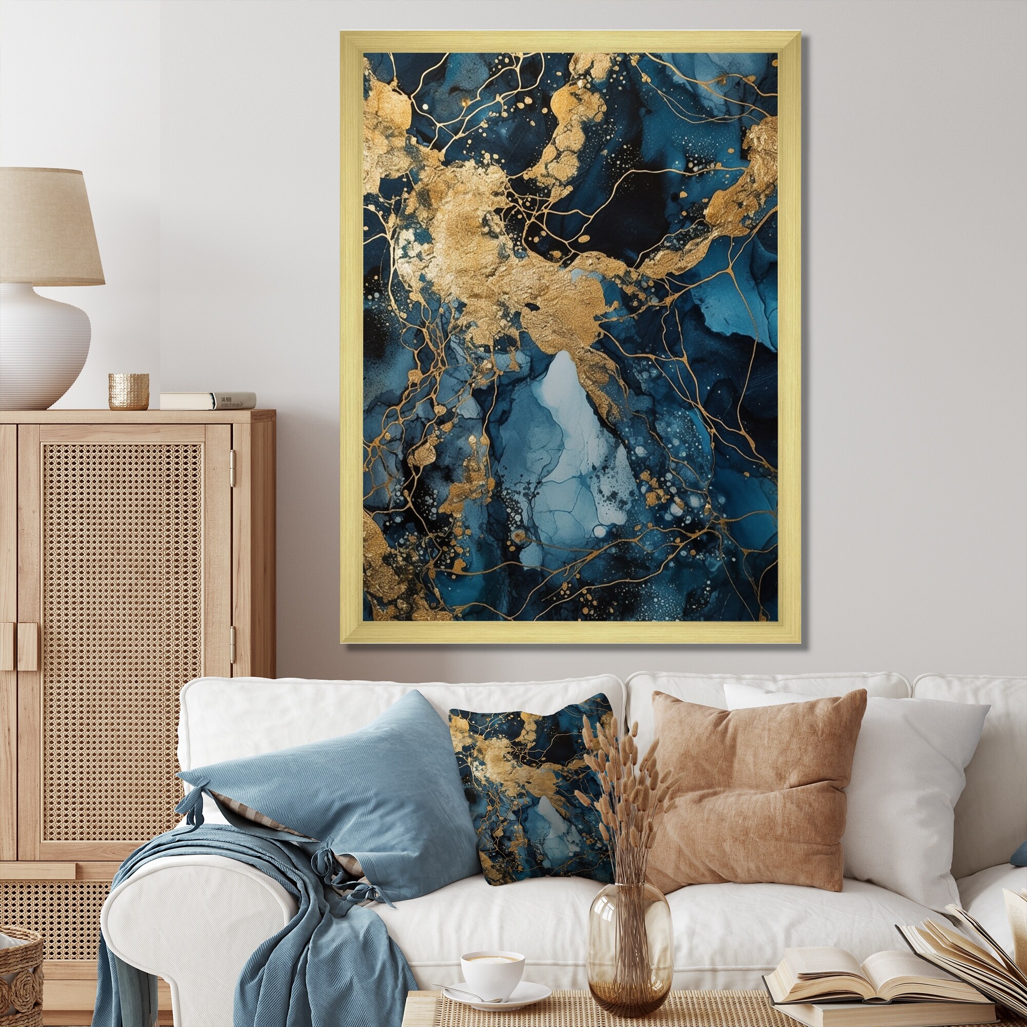 Designart "Exploring The Depths of Blue Geode Ii" Abstract Marble Framed Wall Art Prints