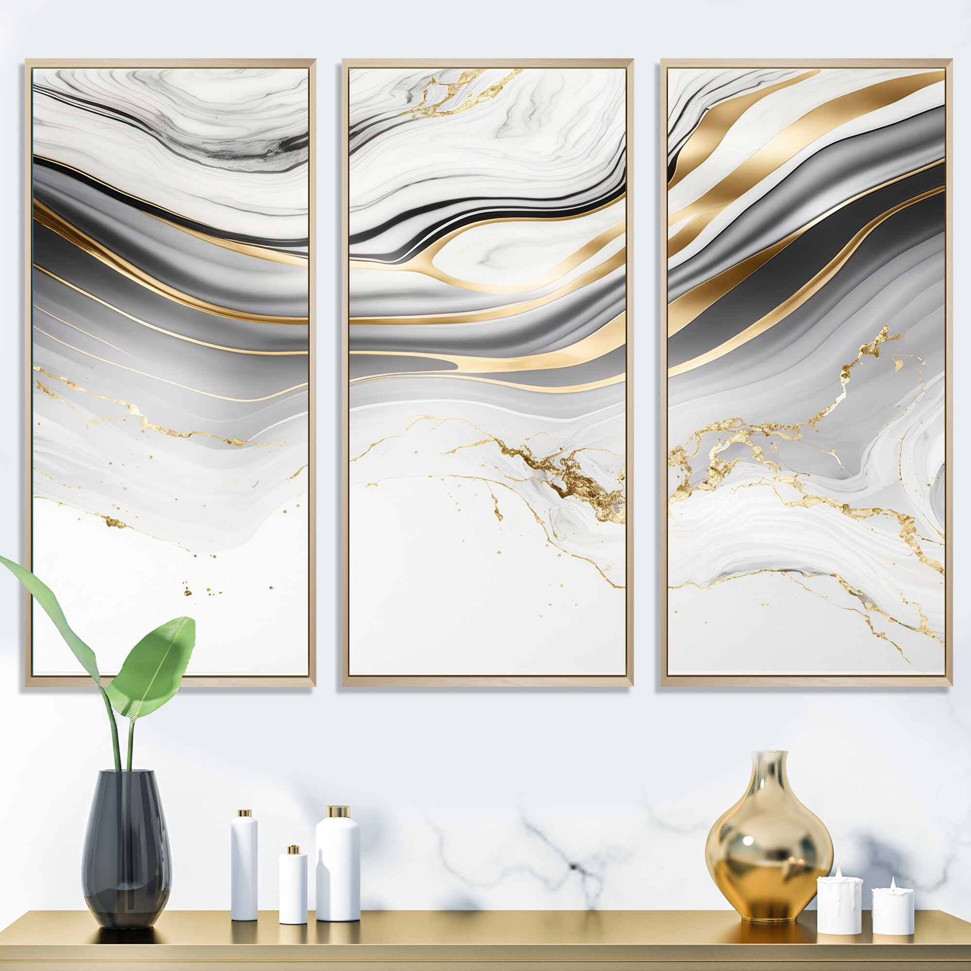 Designart "Abstract Geode Gold And White Marble V" Abstract Marble Framed Canvas Art Print - 3 Panels