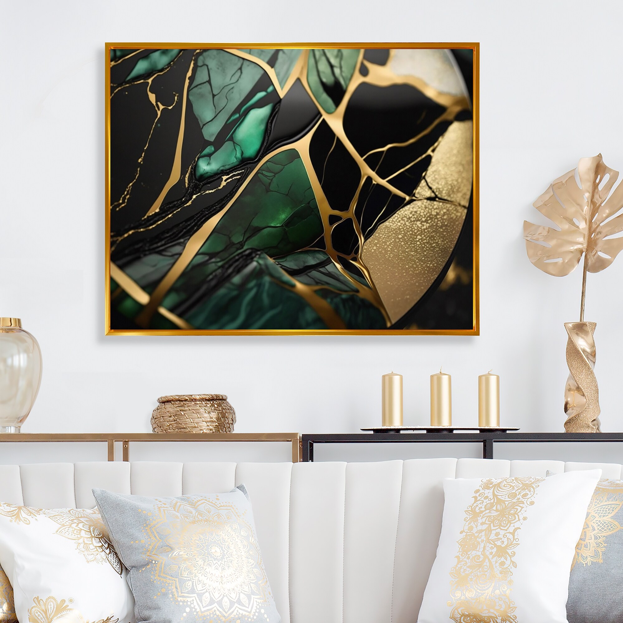 Designart "Abstract Geode Green III" Marble Abstract Framed Canvas Art Print