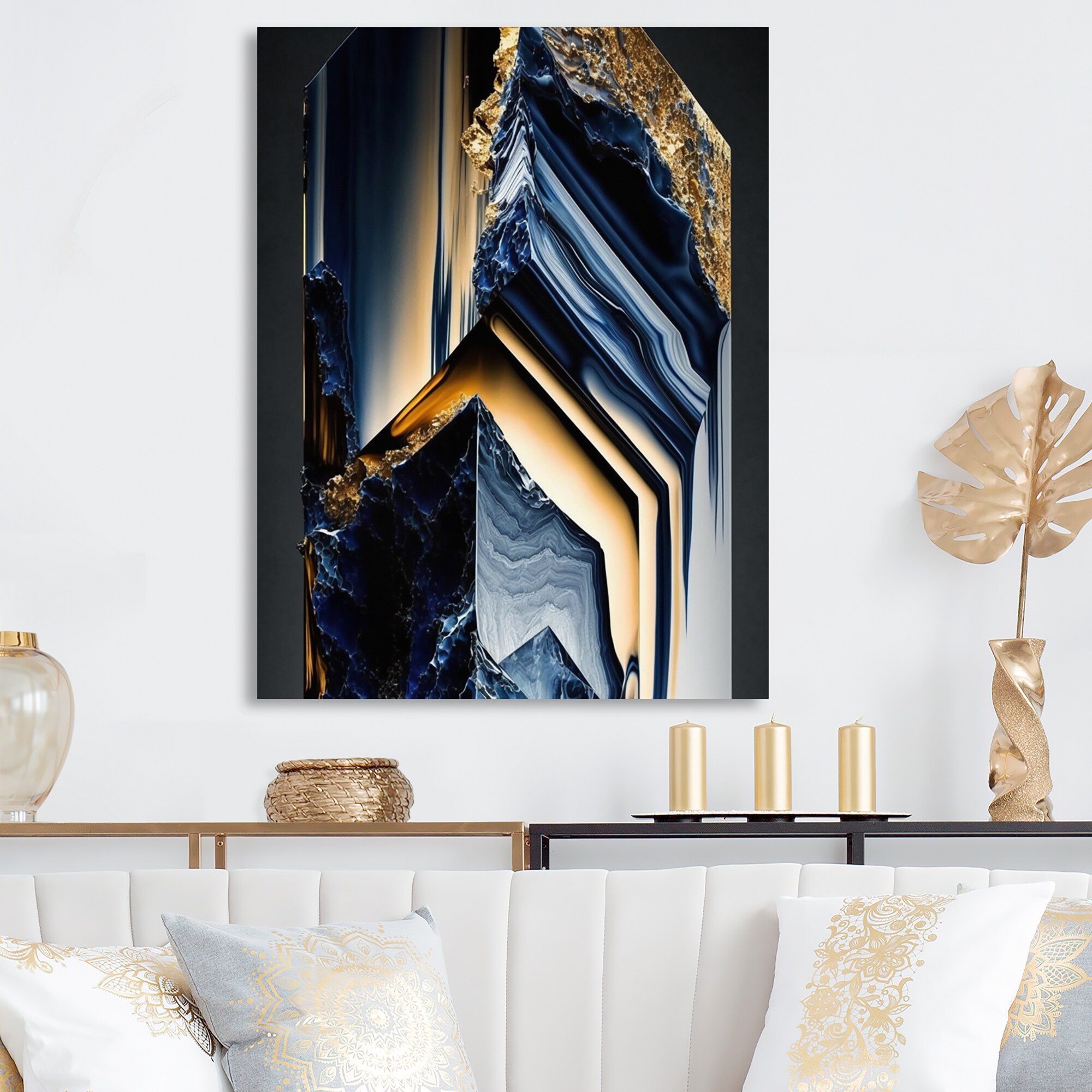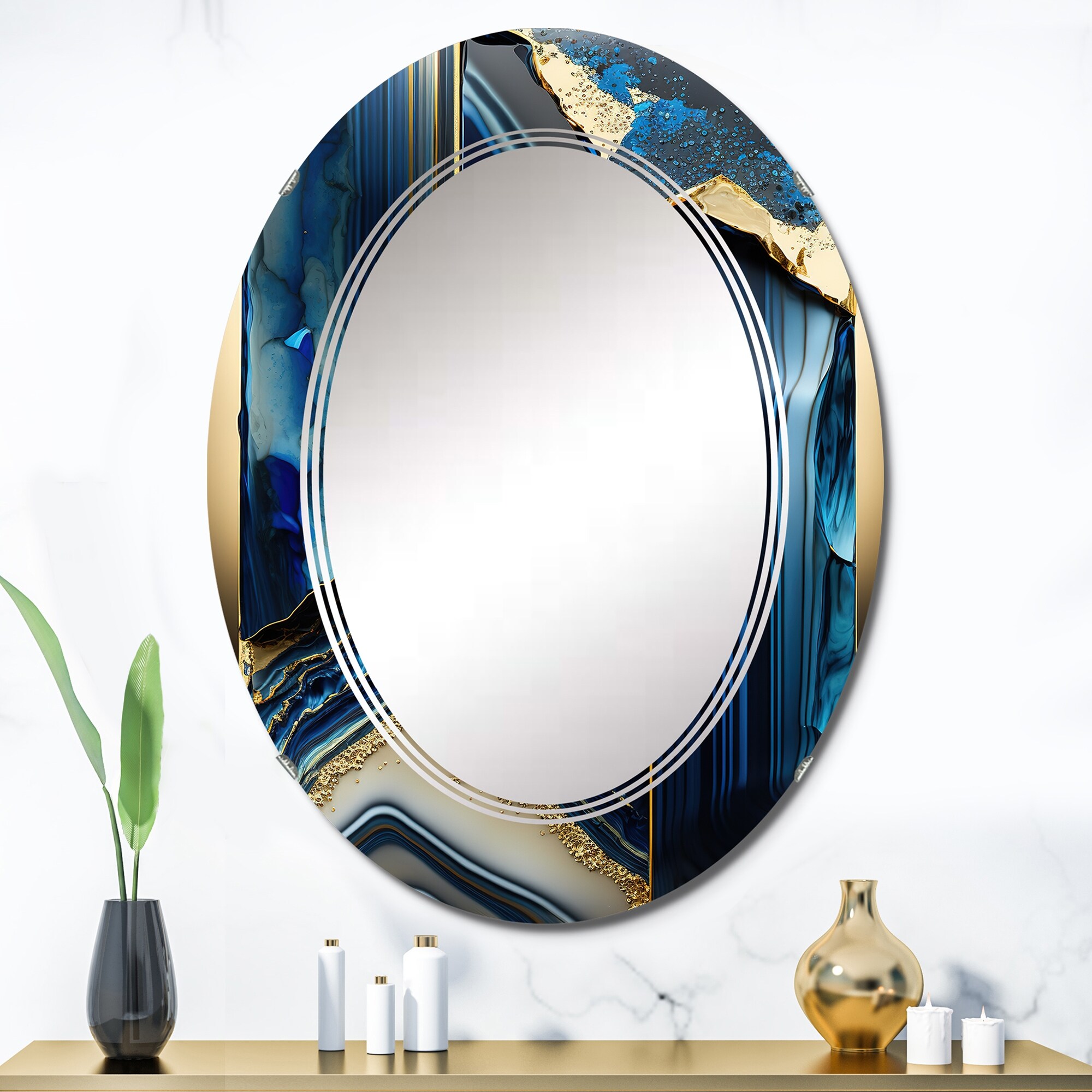 Designart 'Abstract Geode Gold And Blue Marble IV' Printed Abstract Marble Wall Mirror