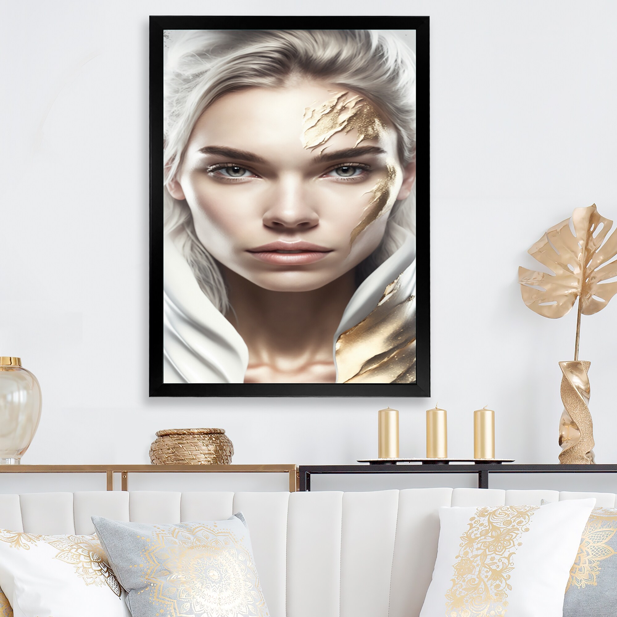 Designart "Abstract Geode Gold on Face I" Fashion Framed Art Print