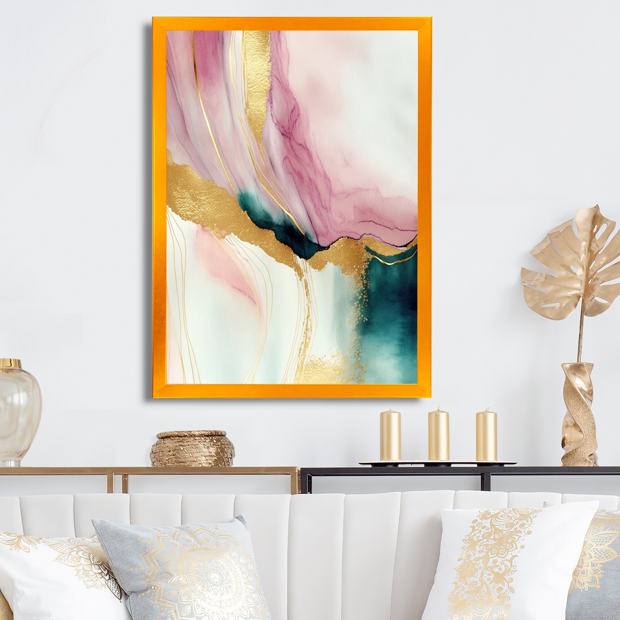 Designart "Abstract Geode Pink And Green Marble I" Marble Abstract Framed Art Print