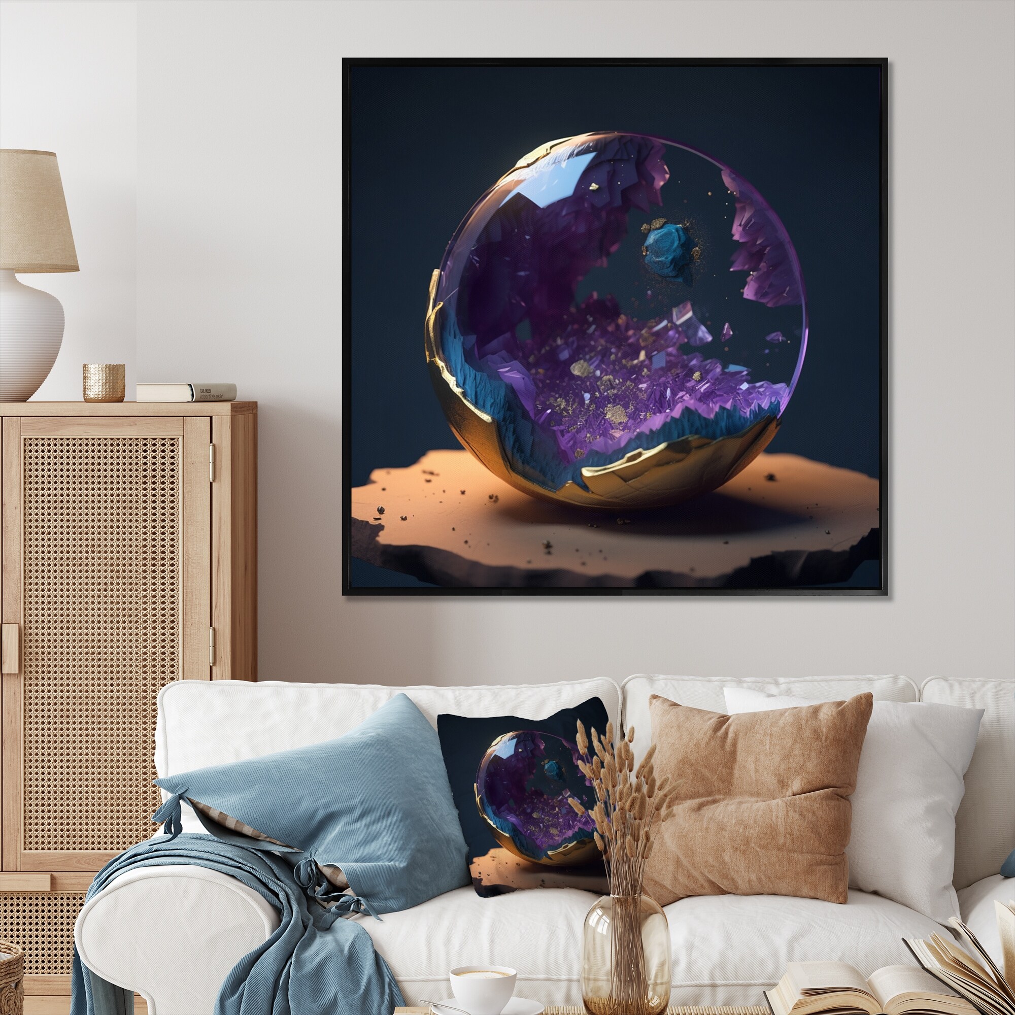 Designart "Exploring The Depths of Purple Gold Geode Iii" Abstract Marble Framed Wall Art for Living Room