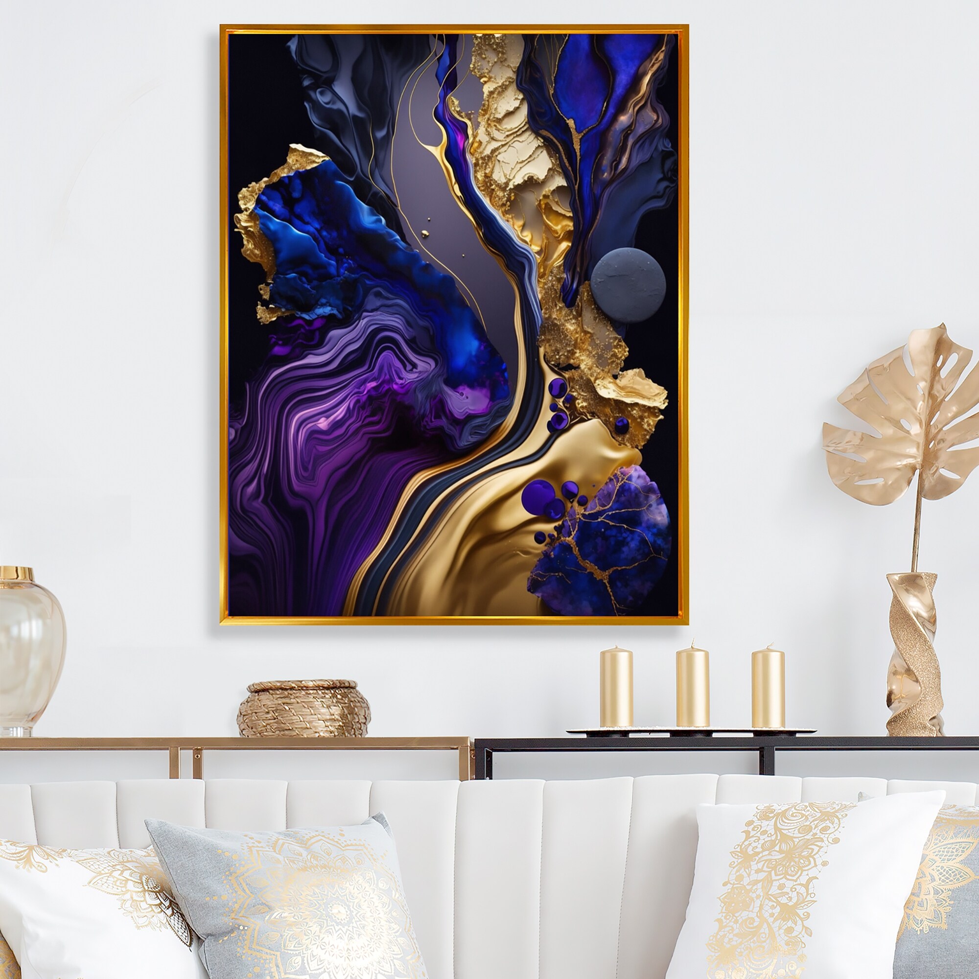 Designart "Abstract Marble Geode Purple And Blue" Liquid ink Framed Canvas Art Print