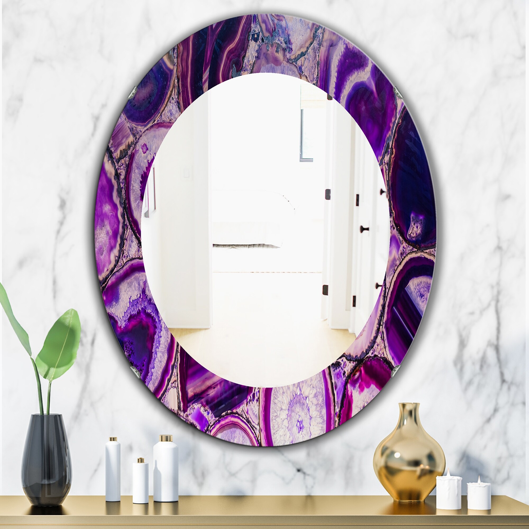 Designart 'Marbled Geode 9' Printed Mid-Century Oval or Round Wall Mirror - Purple