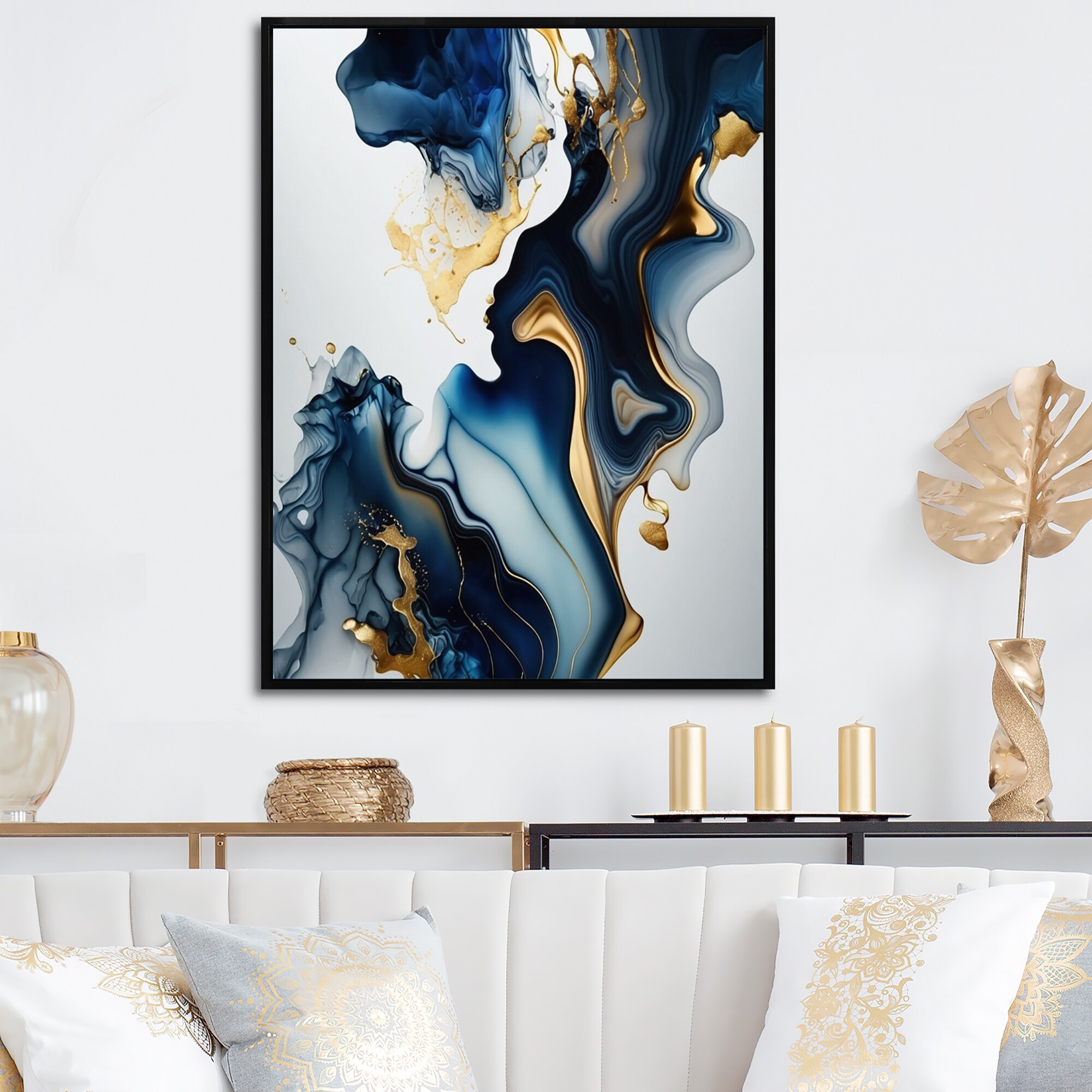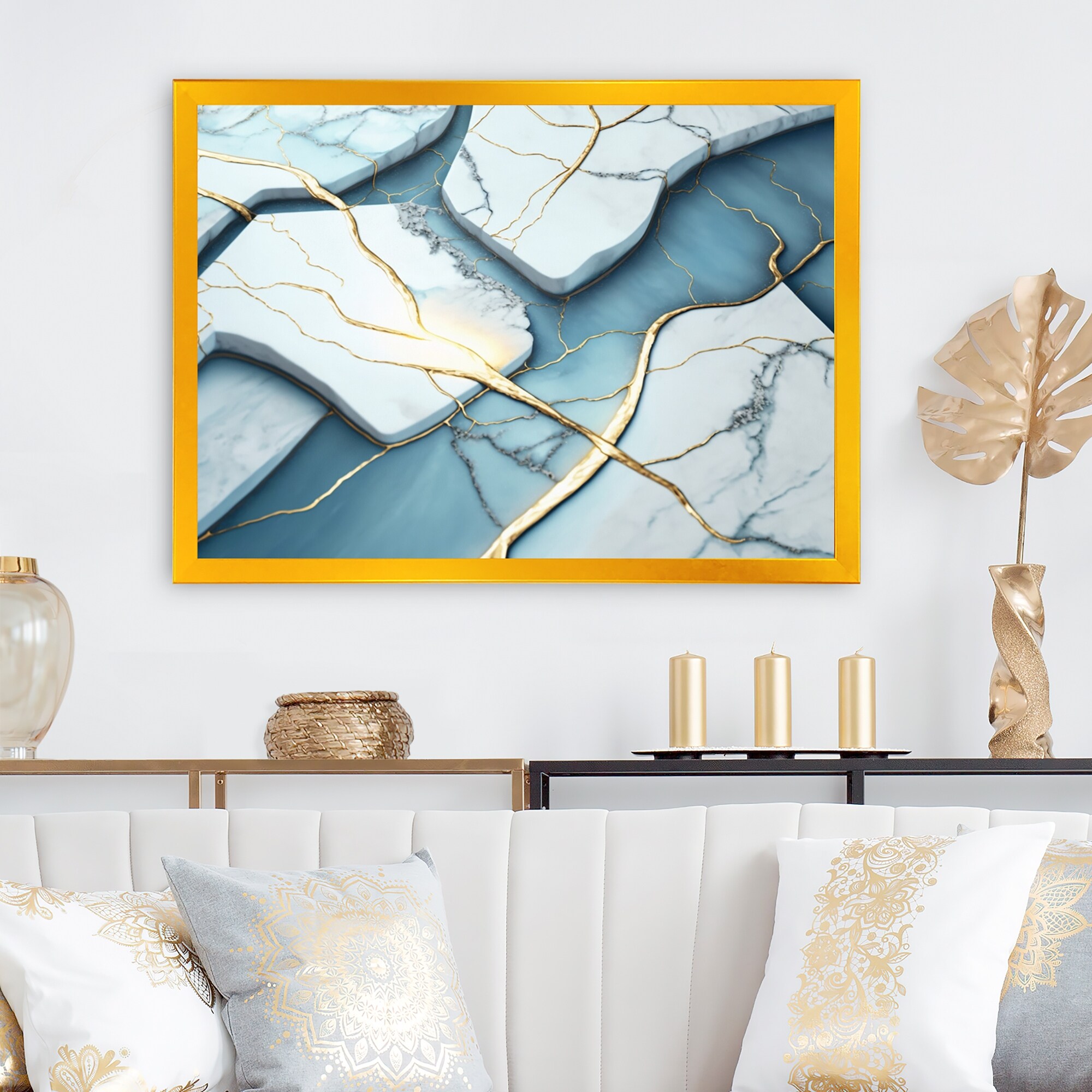 Designart "Abstract Geode Marble Blue I" Marble Abstract Framed Canvas Art Print