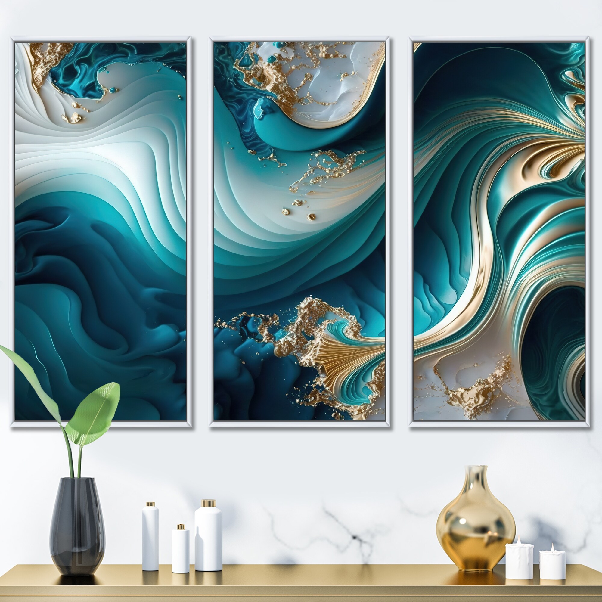 Designart "Abstract Geode Turquoise III" Abstract Marble Framed Canvas Art Print - 3 Panels