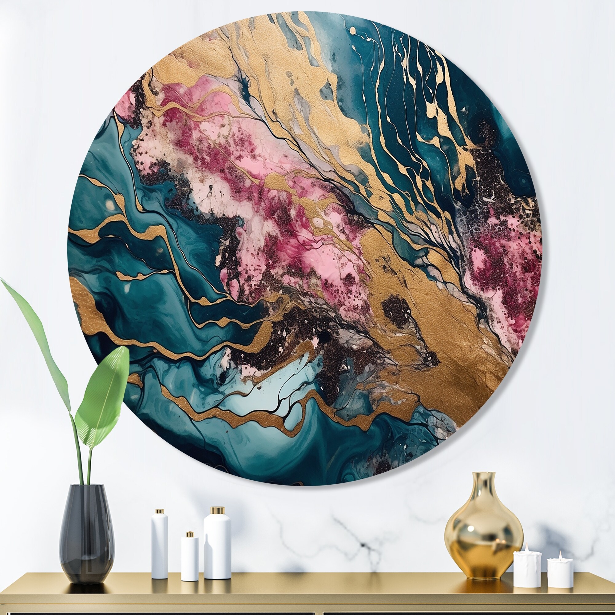 Designart "Exploring The Depths of Pink Gold Geode II" Abstract Marble Metal Round Wall Art