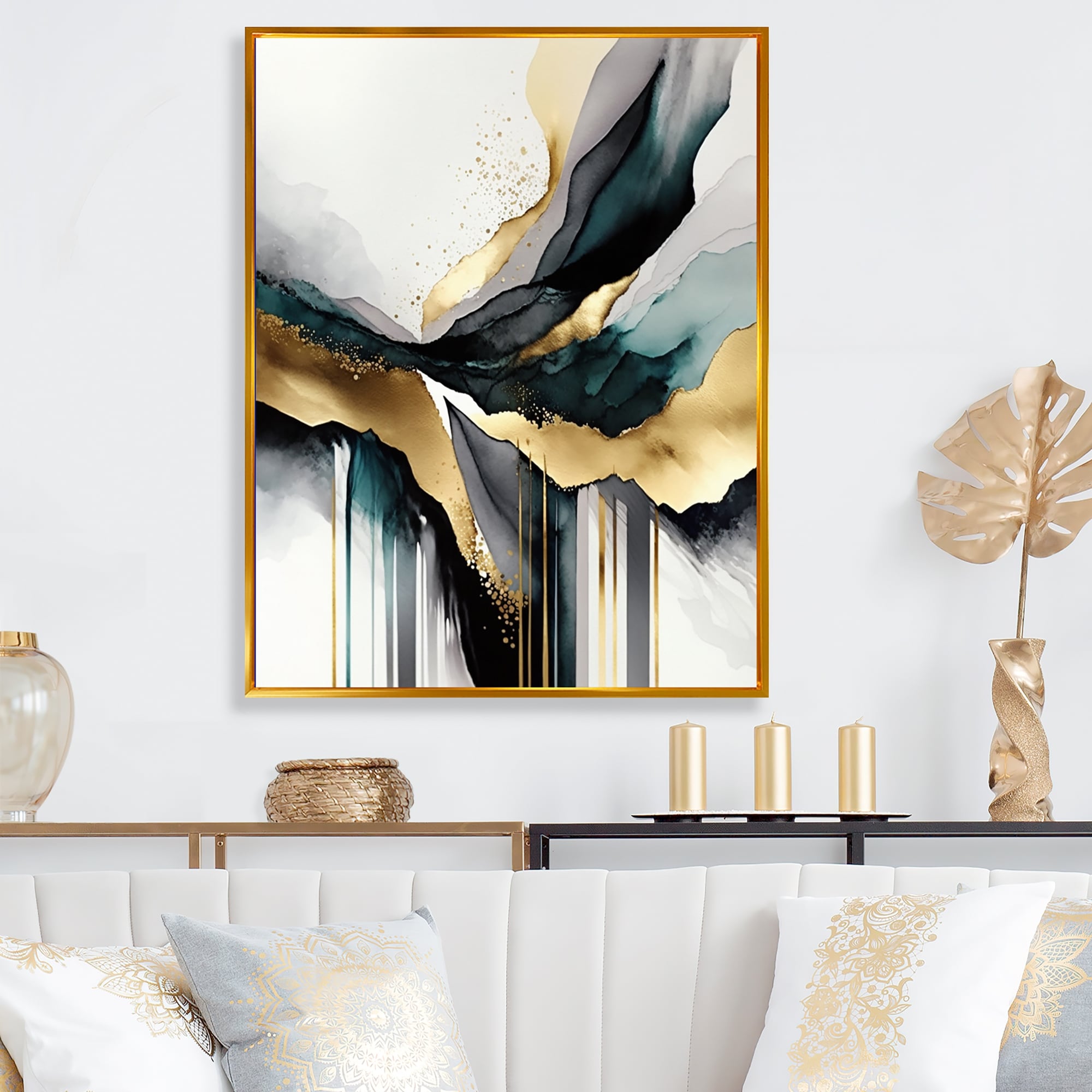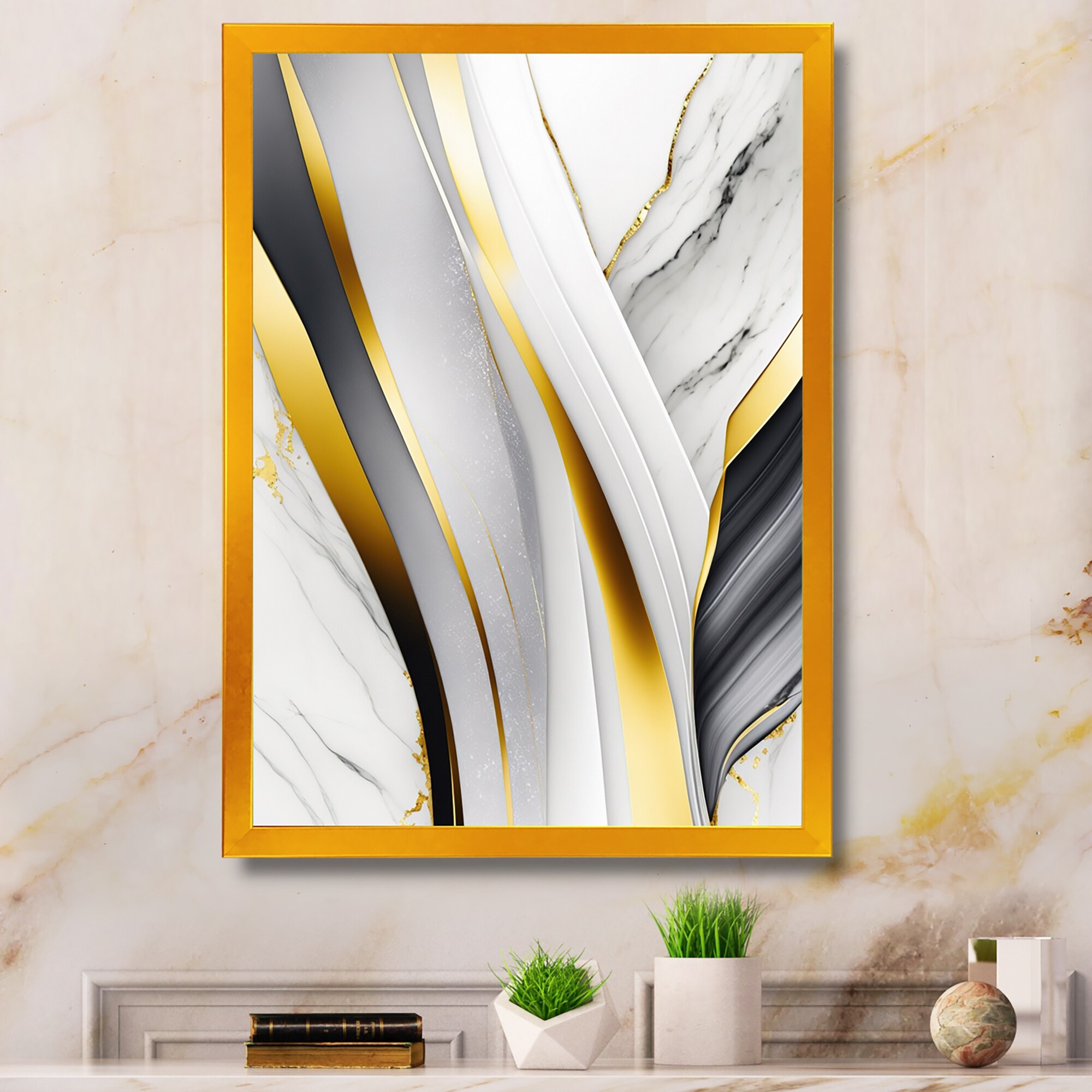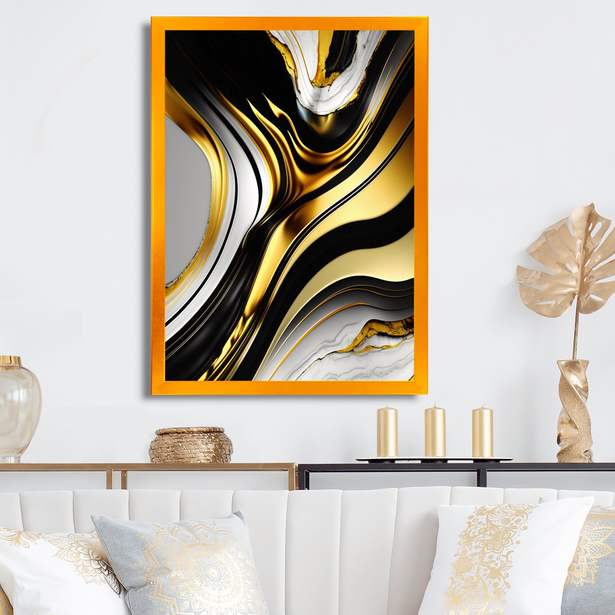 Designart "Abstract Geode Marble Waves Gold II" Abstract Framed Art Print