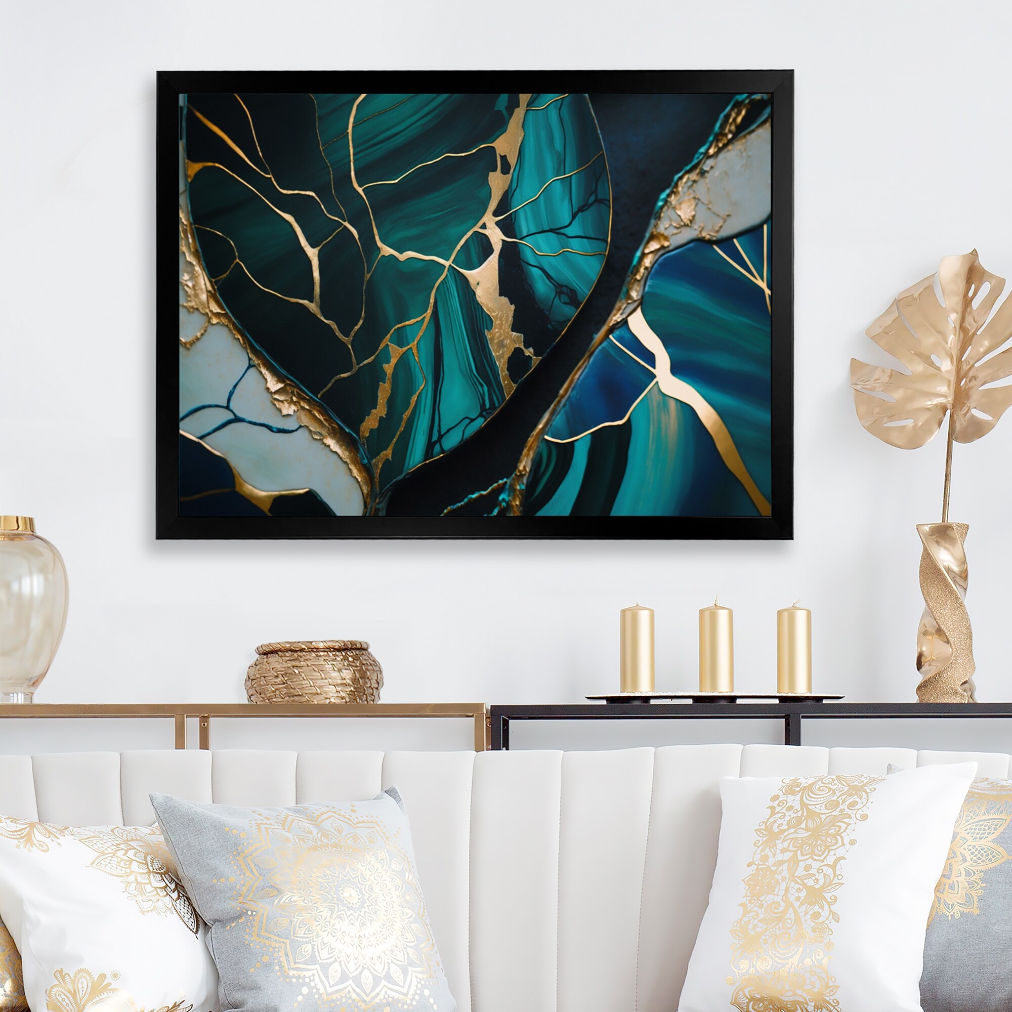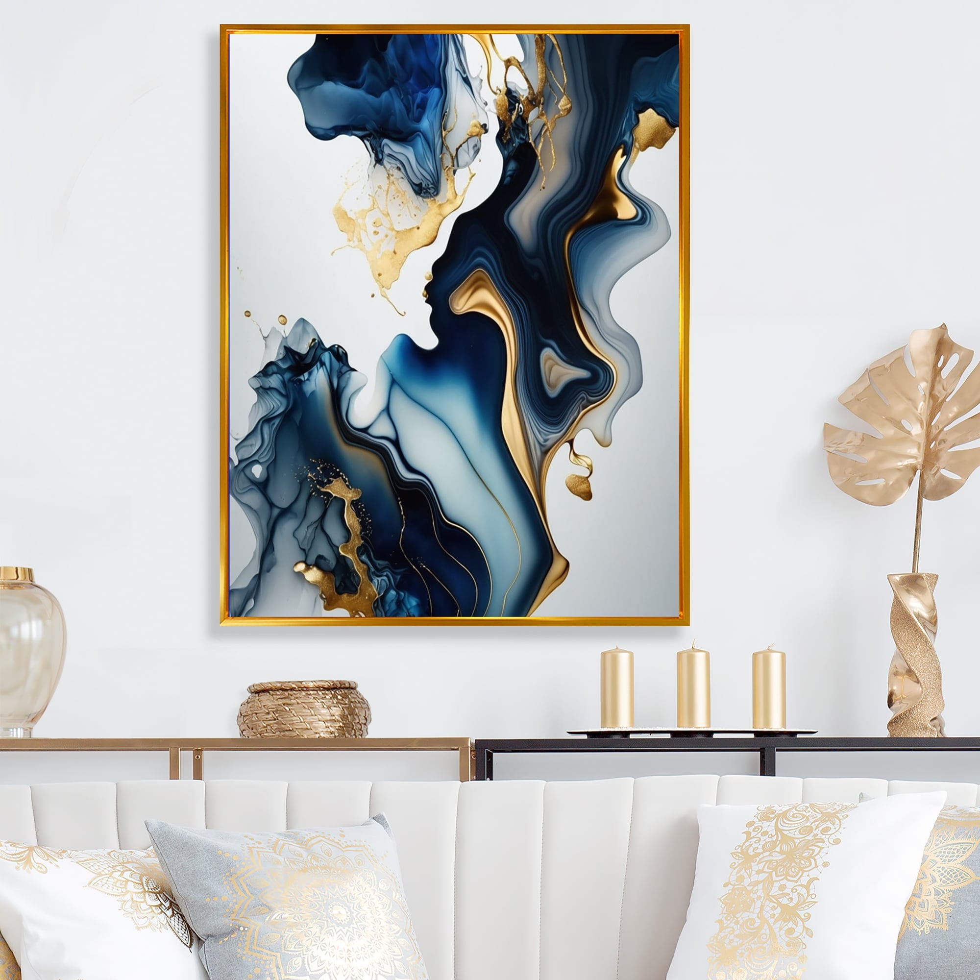 Designart "Abstract Geode Gold And Blue Marble II" Marble Abstract Framed Art Print