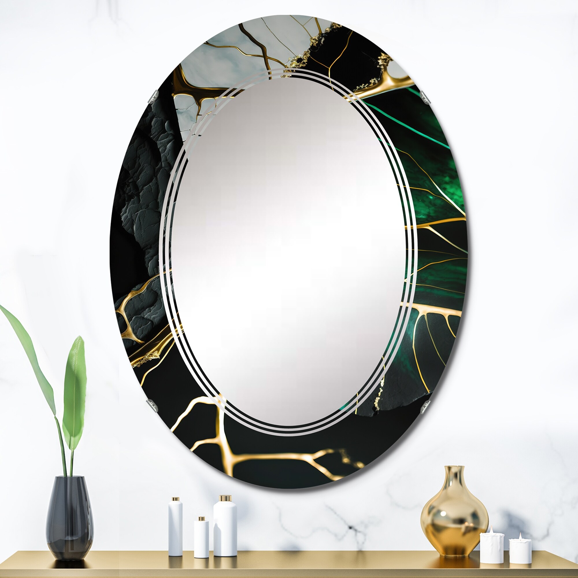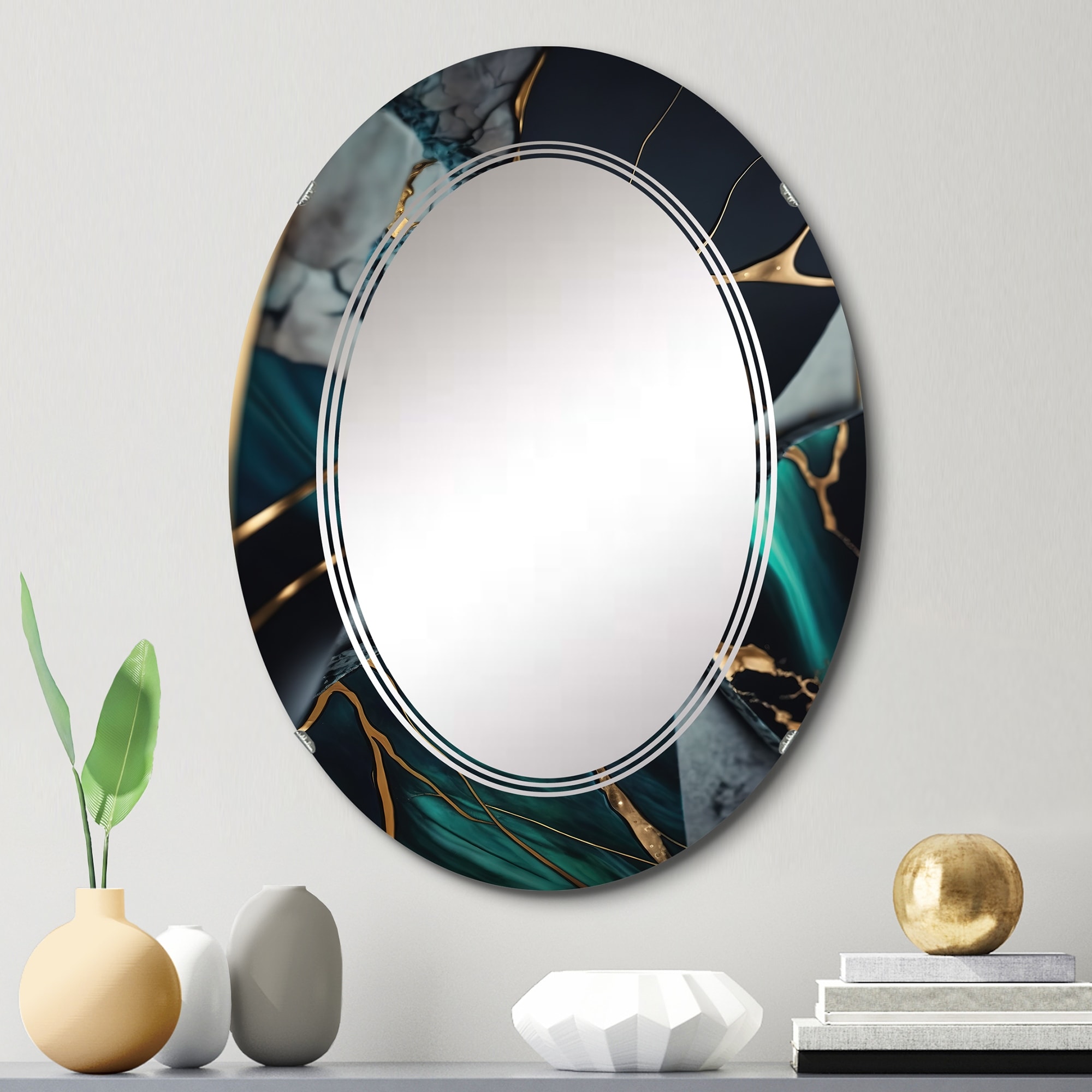 Designart 'Abstract Geode Green IV' Printed Abstract Marble Wall Mirror