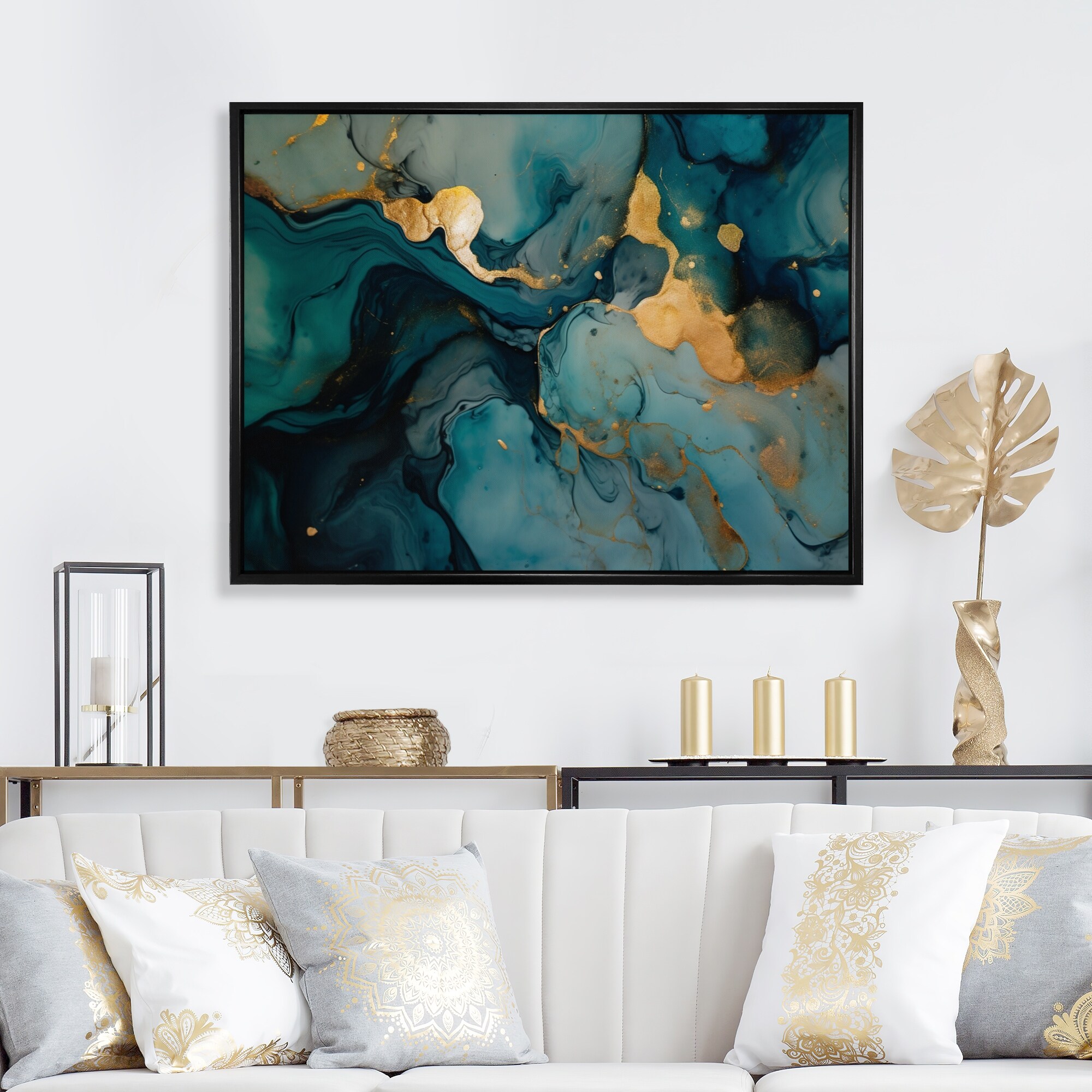 Designart "Abstract Geode Marble Blue I" Marble Abstract Framed Canvas Art Print