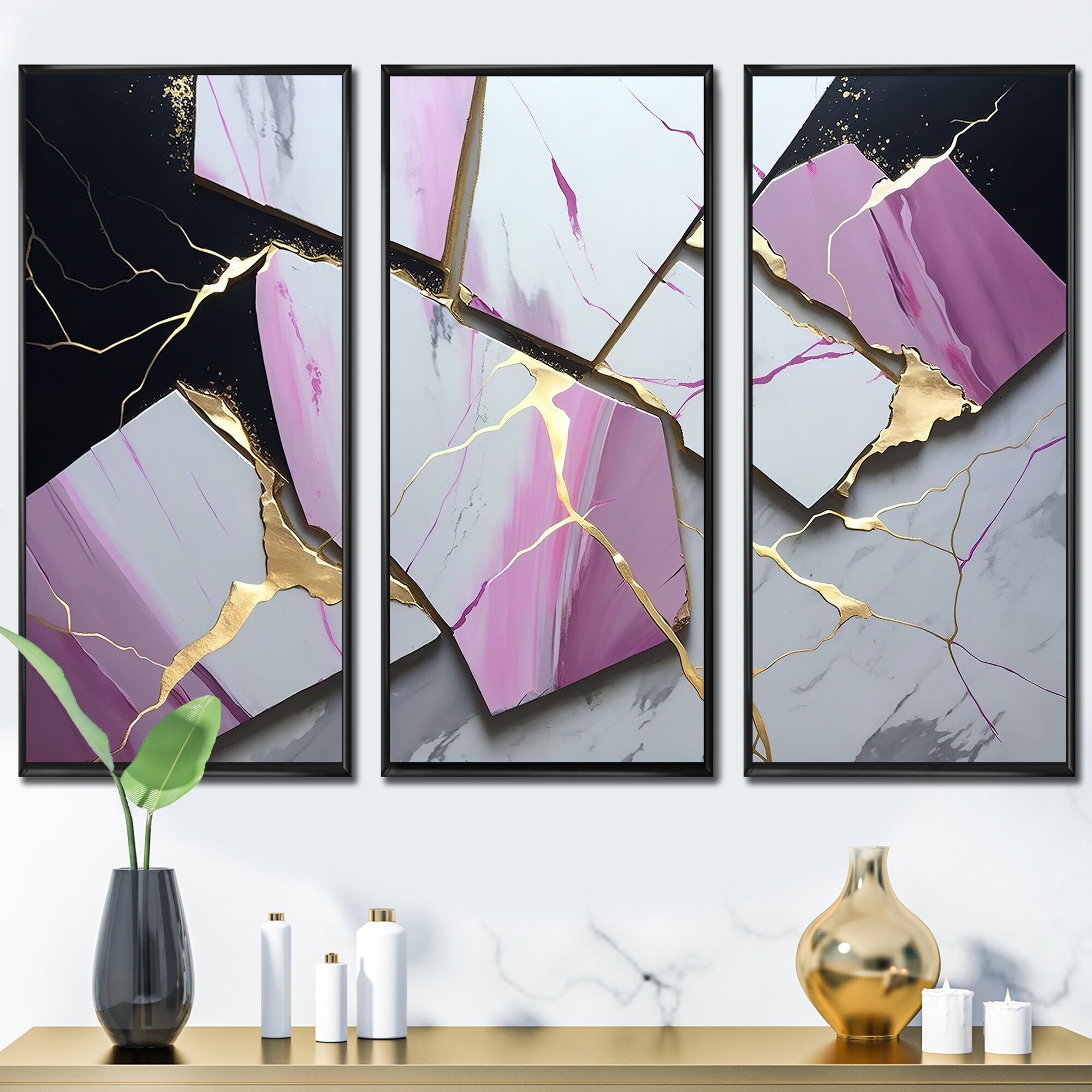 Designart "Abstract Geode Pink II" Abstract Marble Framed Canvas Art Print - 3 Panels