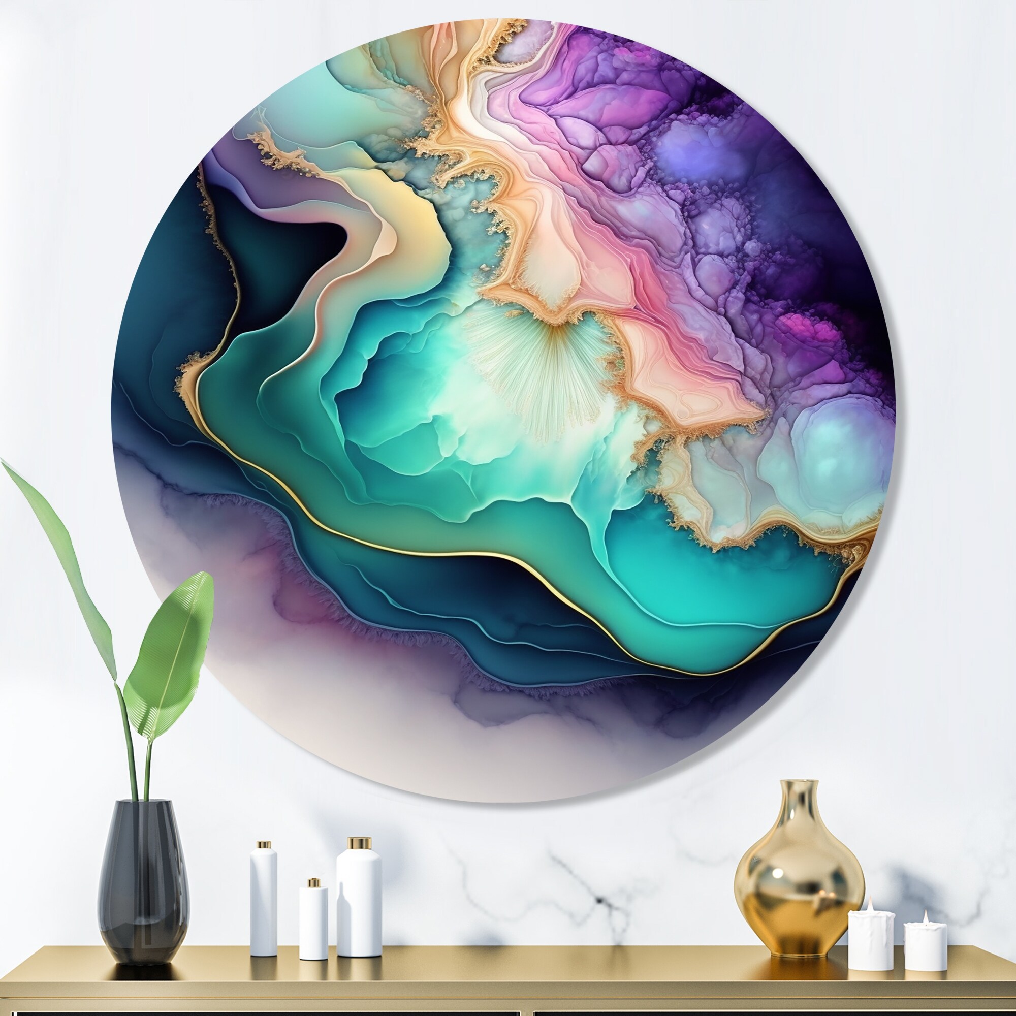 Designart "Blue Purple Abstract Geode II" Abstract Marble Metal Round Wall Art