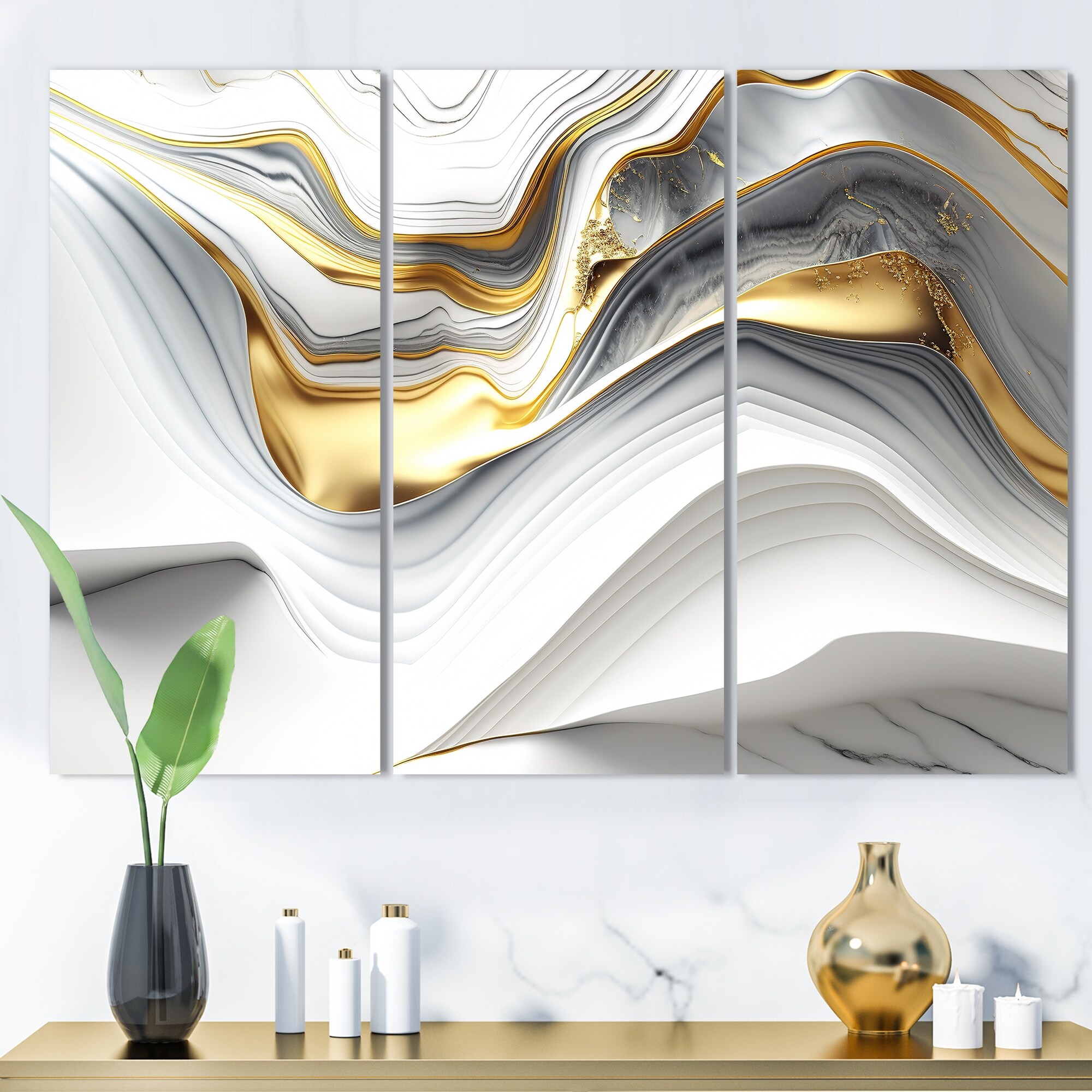 Designart "Abstract Geode Marble White And Gold IV" Abstract Marble Canvas Art Print - 3 Panels