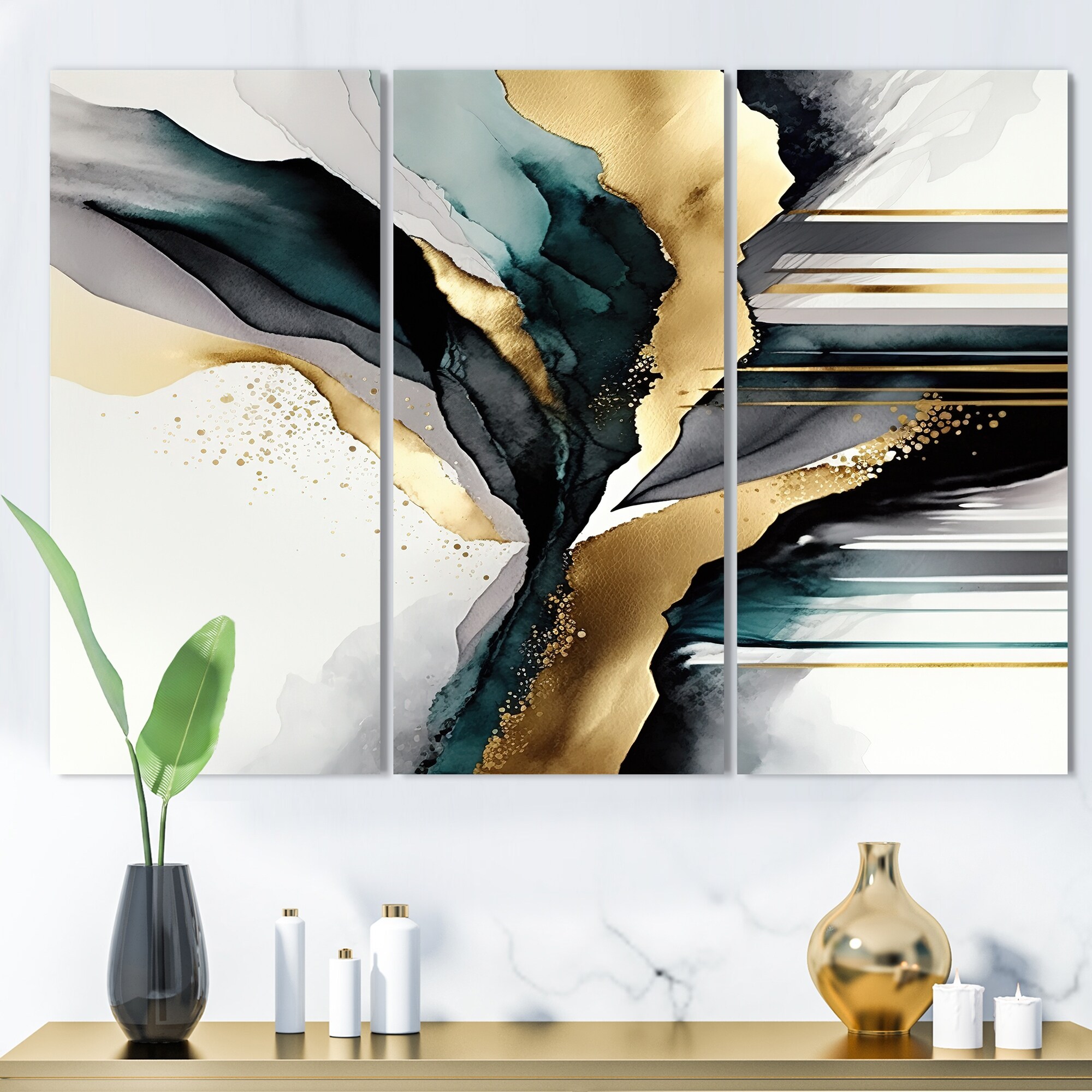 Designart "Abstract Geode Gold III" Abstract Marble Framed Canvas Art Print - 3 Panels