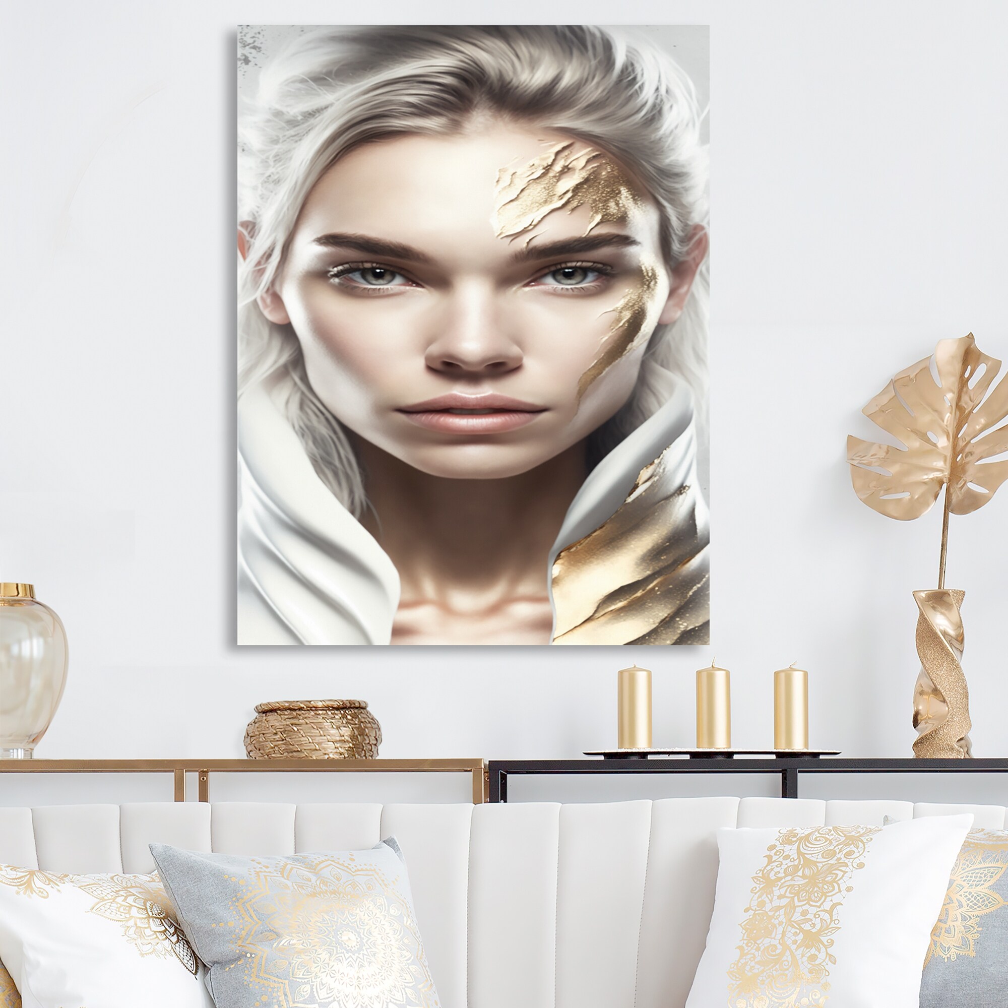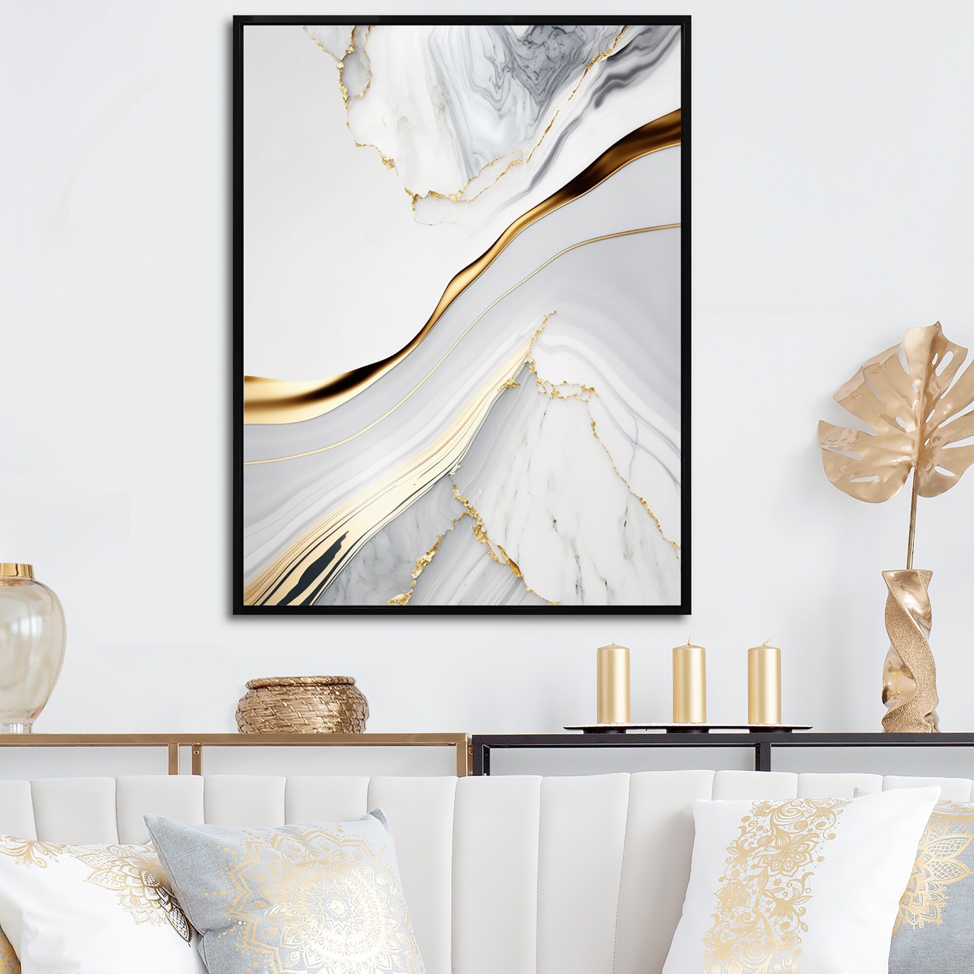 Designart "Abstract Geode Marble White And Gold V" Marble Abstract Framed Canvas Art Print