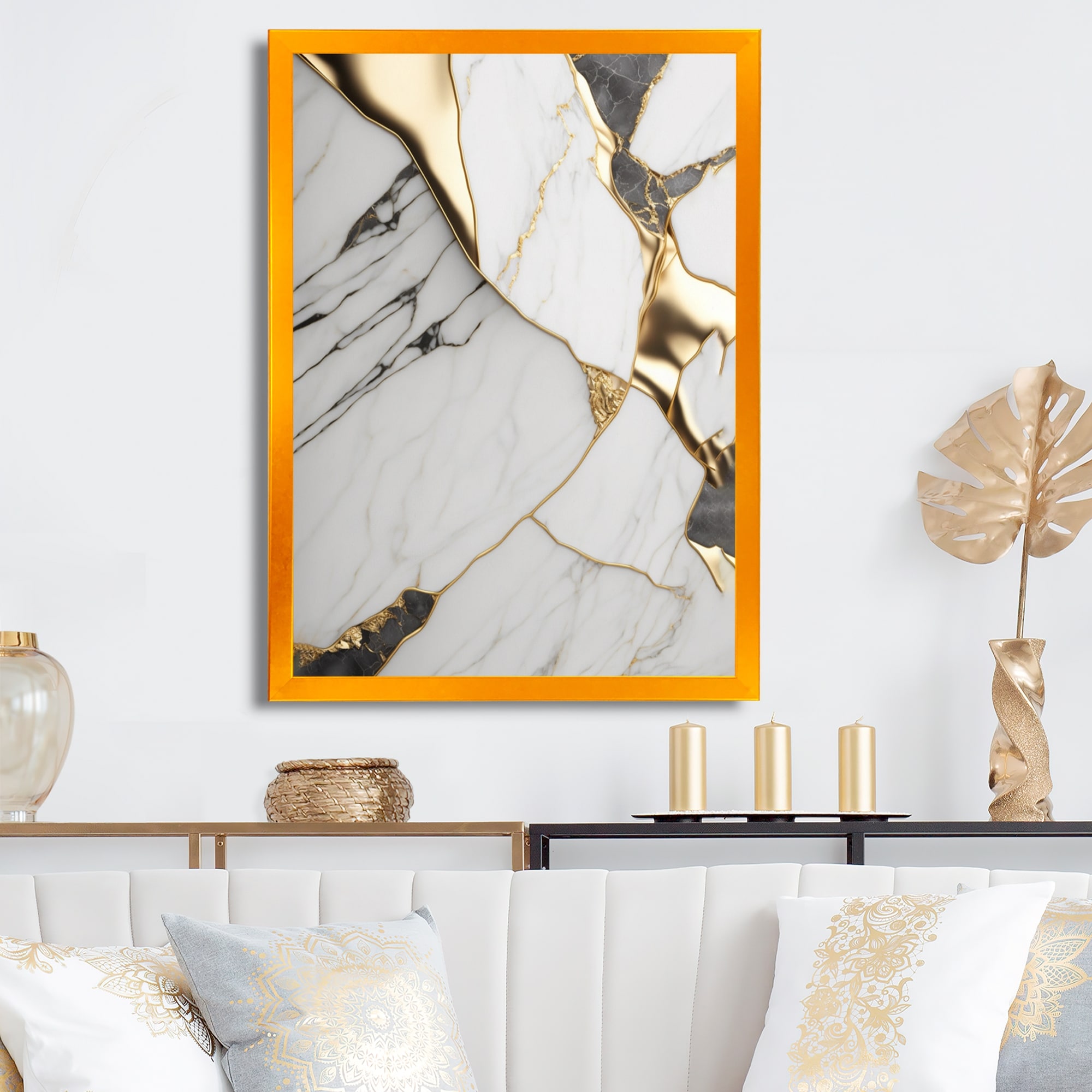 Designart "Abstract Geode Marble White And Gold III" Marble Abstract Framed Art Print