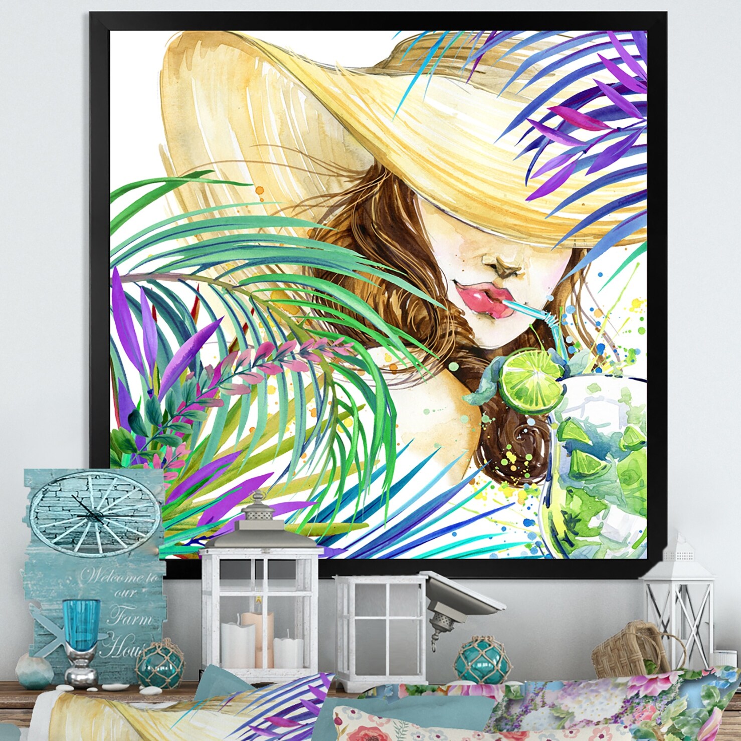 Designart "Tropical Mojito Girl" Traditional Framed artwork